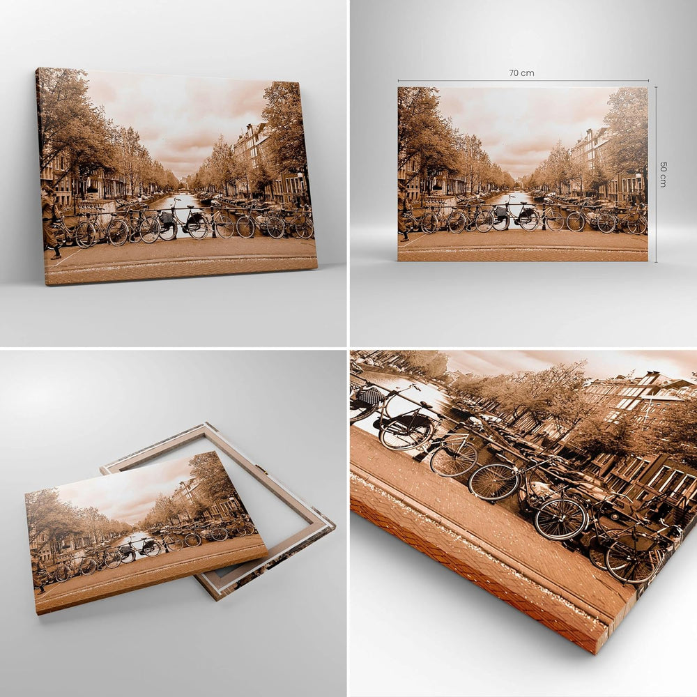 Bilder auf Leinwand Kanal Fahrräder Amsterdam Zentrum Leinwandbild 70x50cm Wandbilder Dekoration Woh