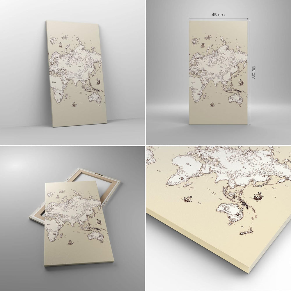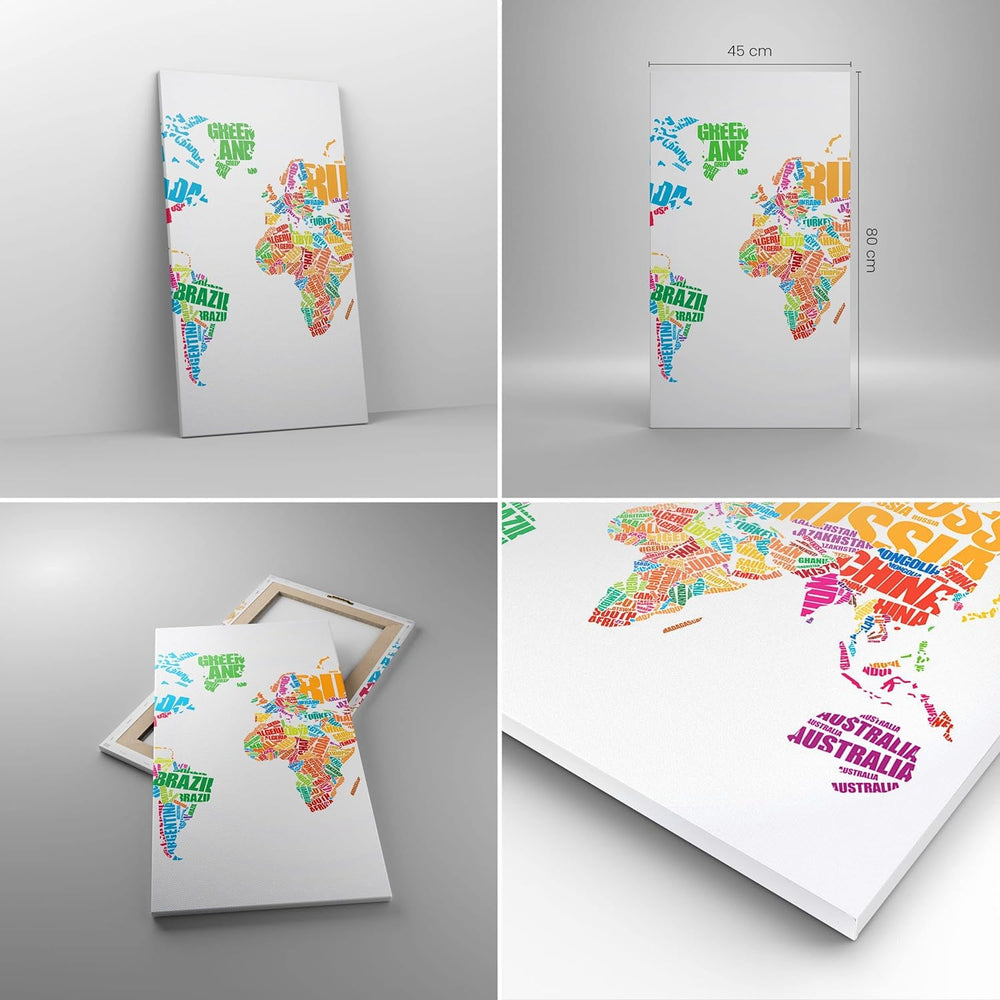 Bilder auf Leinwand Karte Welt Land Leinwandbild mit Rahmen 45x80cm Wandbilder Dekoration Wohnzimmer