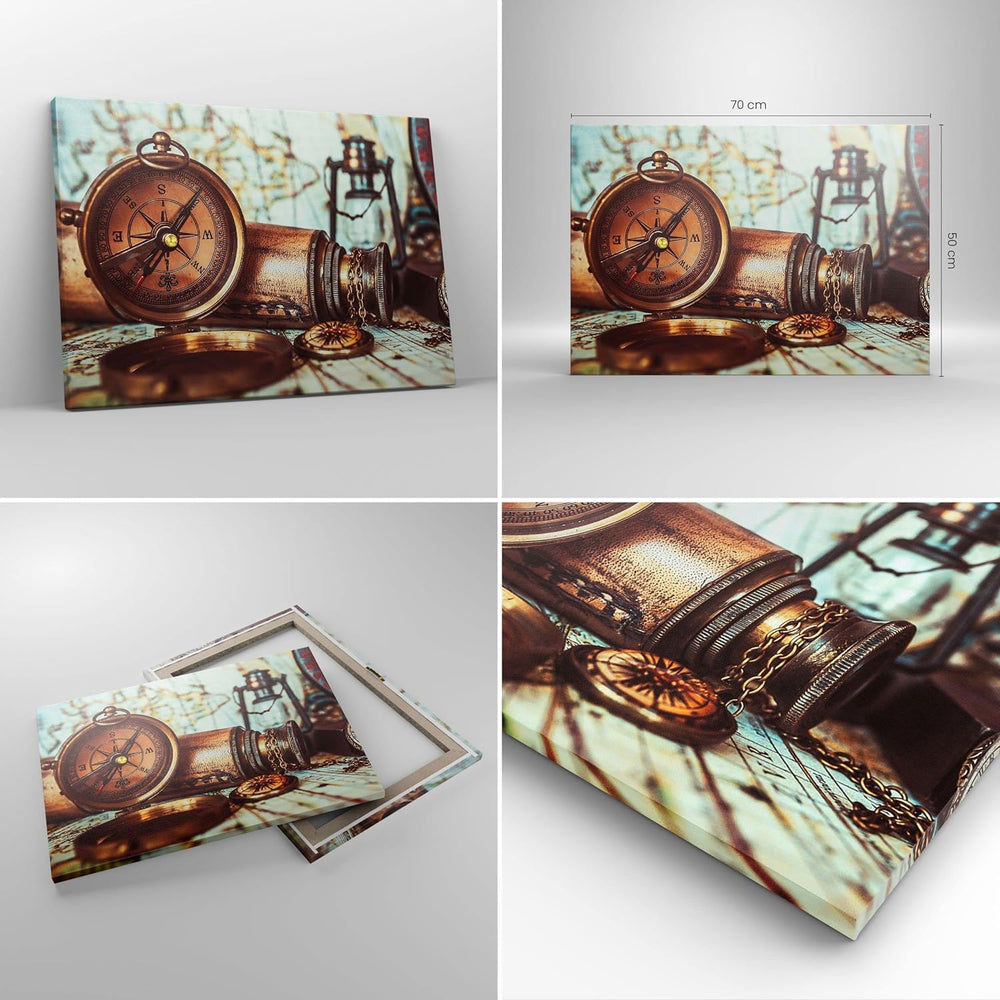Bilder auf Leinwand Kompass Teleskop Abenteuer antik Leinwandbild 70x50cm Wandbilder Dekoration Wohn