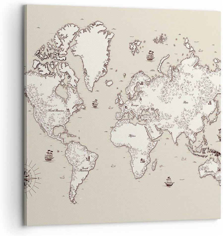 Bilder auf Leinwand Karte Welt Klassiker Kontinente Leinwandbild 60x60cm Wandbilder Dekoration Wohnz