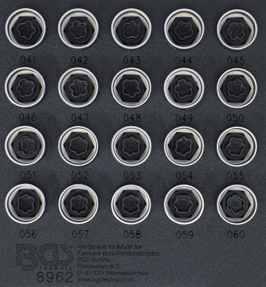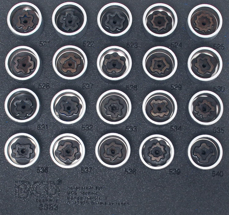 BGS 8962 | Werkstattwageneinlage 1/6: Felgenschloss-Werkzeug-Satz für BMW | 20-tlg. BMW | Var. 2 | 2