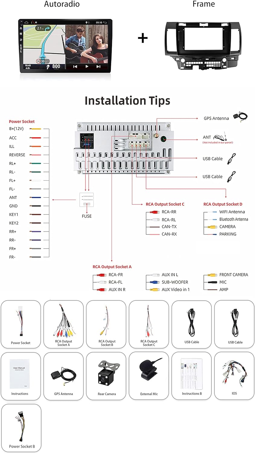 YUNTX [6GB+128GB] Android 10 2 Din Car Stereo Fit for Mitsubishi Lancer(2008-2016)-[Built-in CarPlay