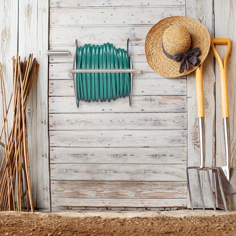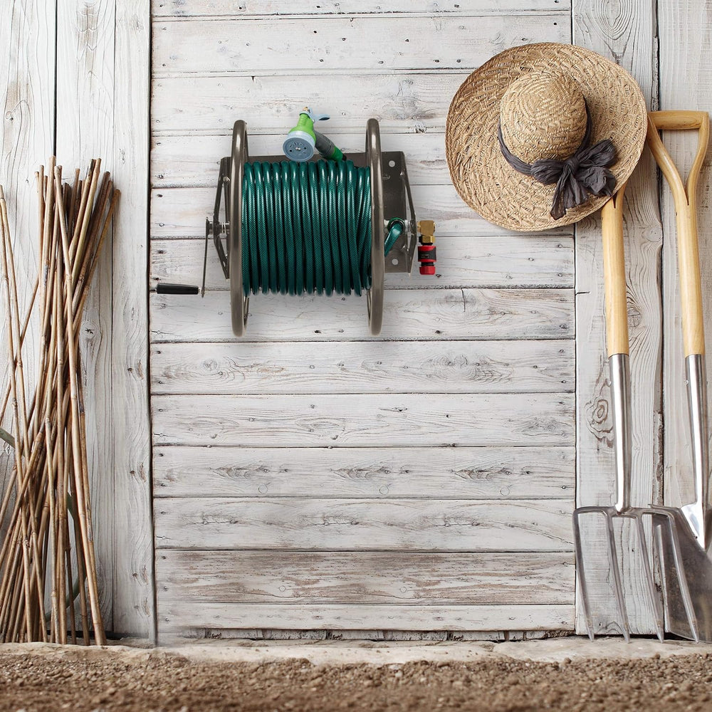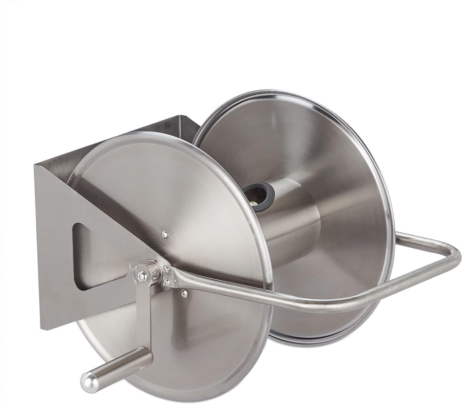 Relaxdays Schlauchtrommel Edelstahl, Schlauchaufroller leer, Boden & Wand, für 40m Gartenschlauch, S