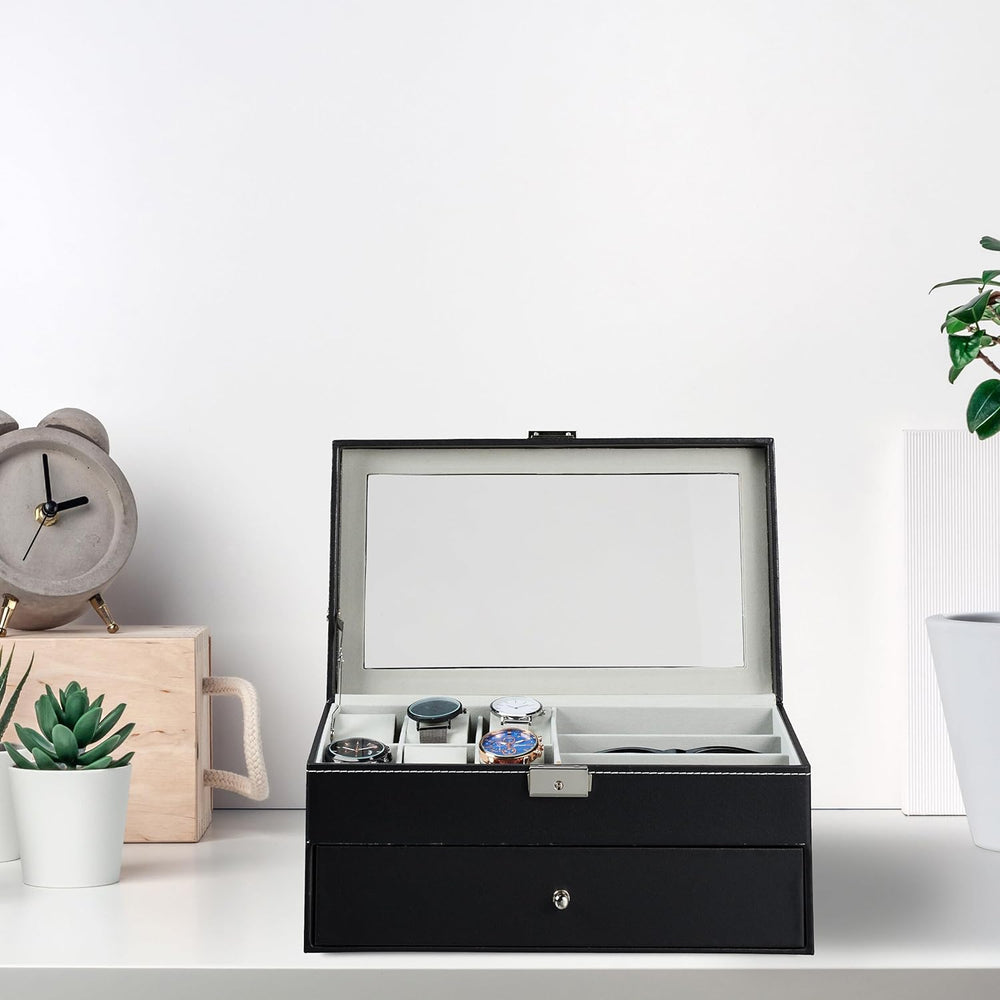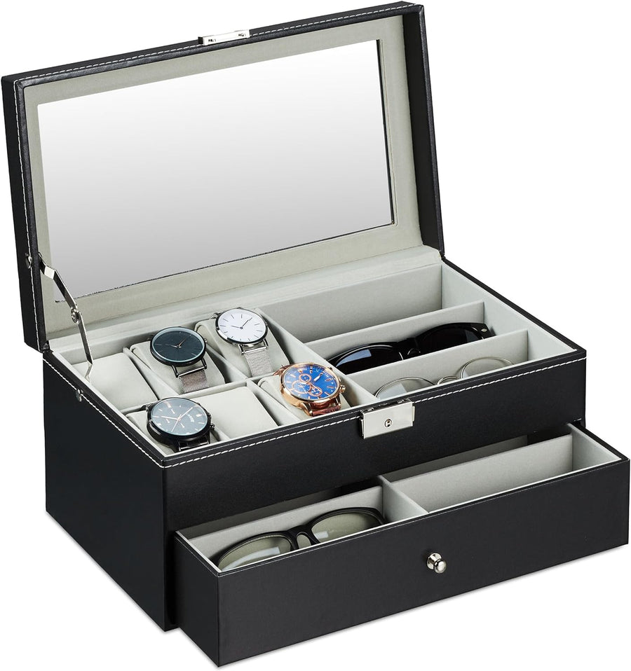 Relaxdays Schmuckaufbewahrung, grosses Schmuckkästchen mit Schublade, für Brillen & Uhren, HBT: 15,5