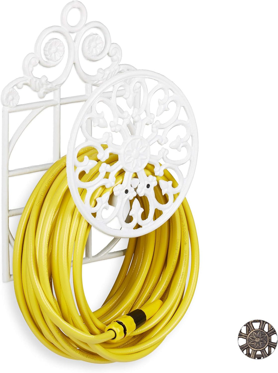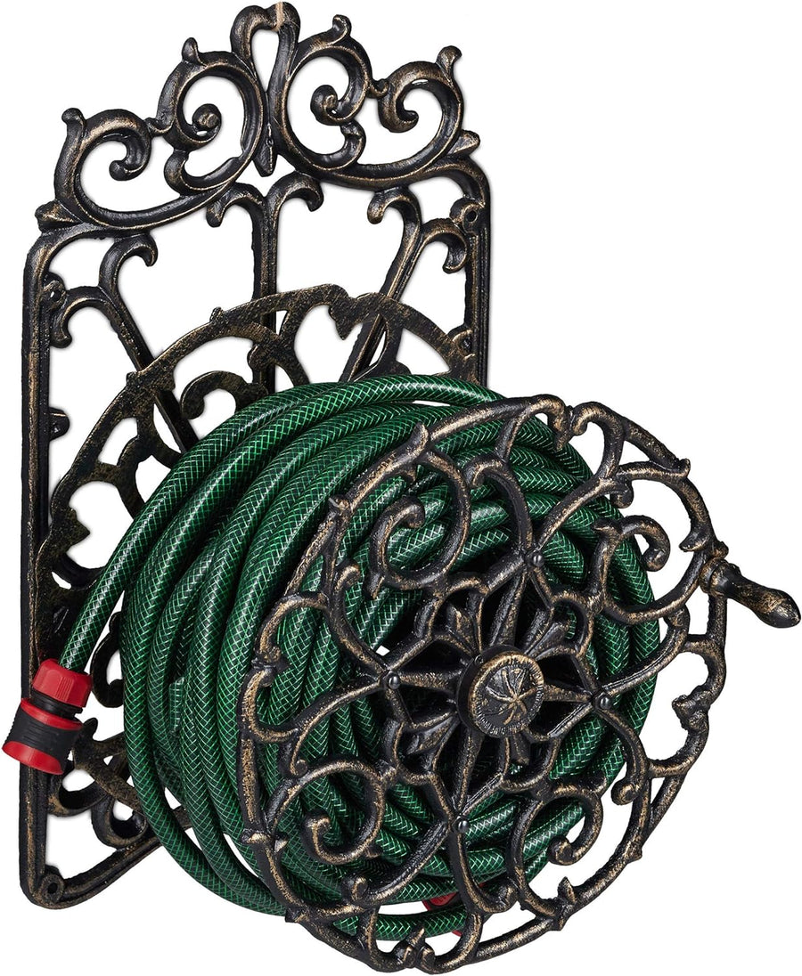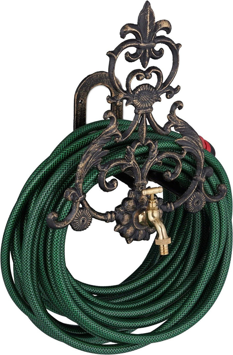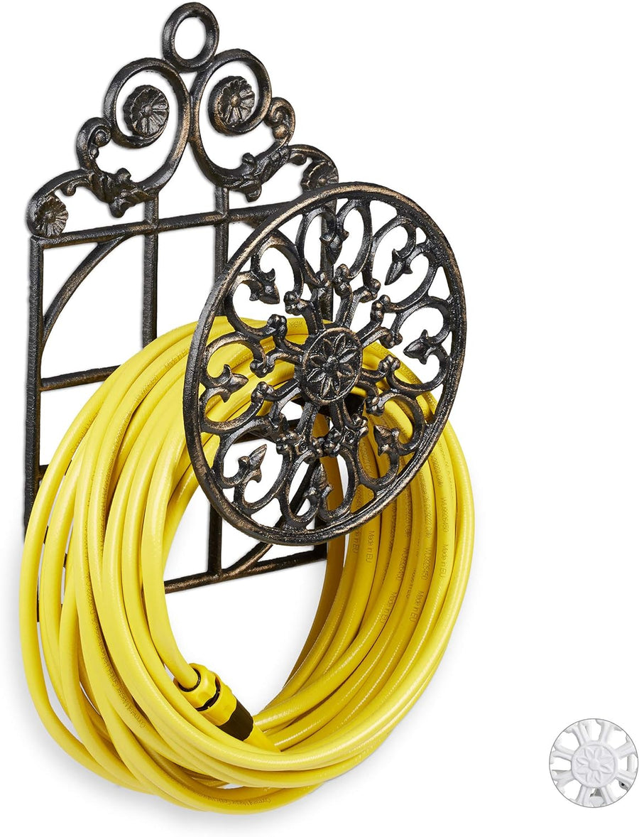 Relaxdays Schlauchhalter, grosser Wasserschlauchhalter in nostalgischem Design, Gusseisen, hängend,