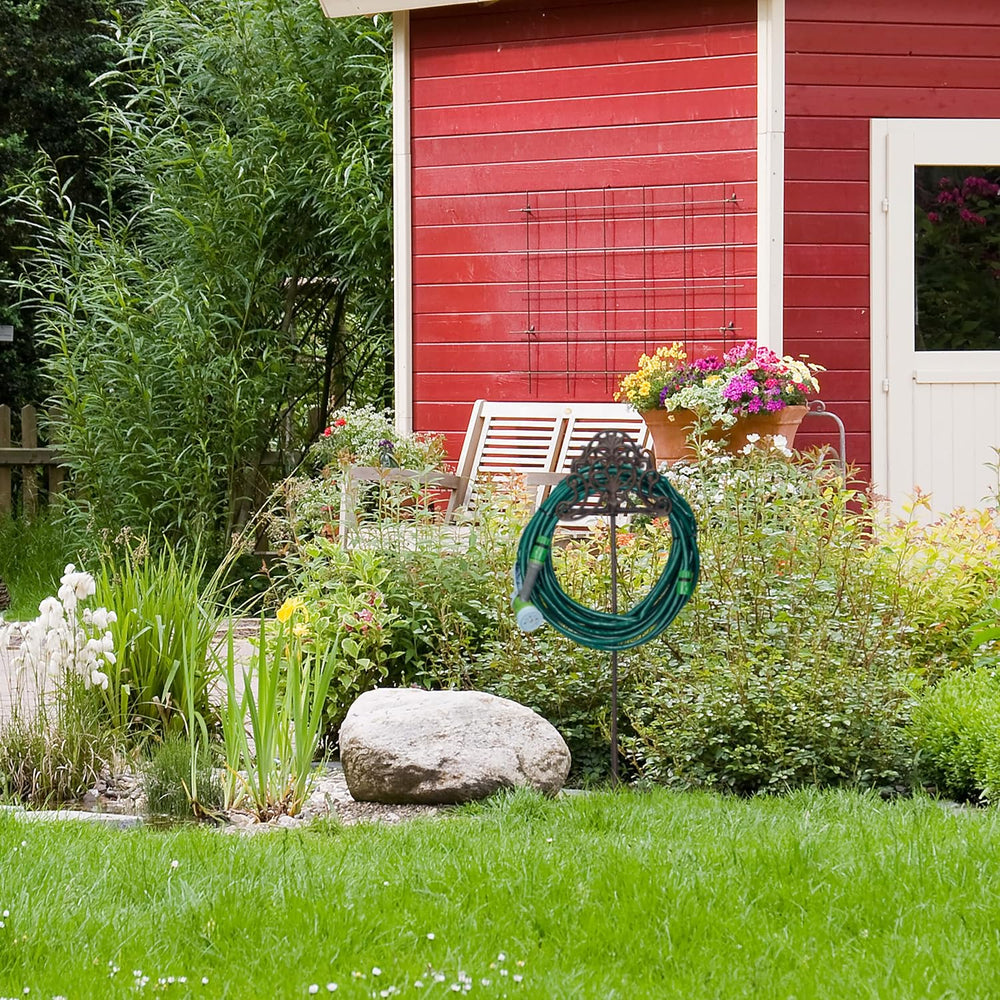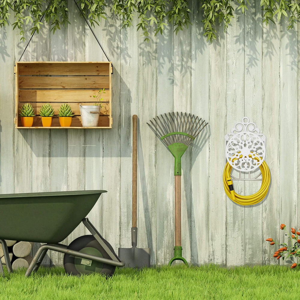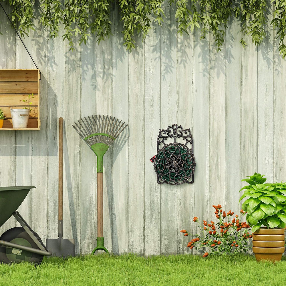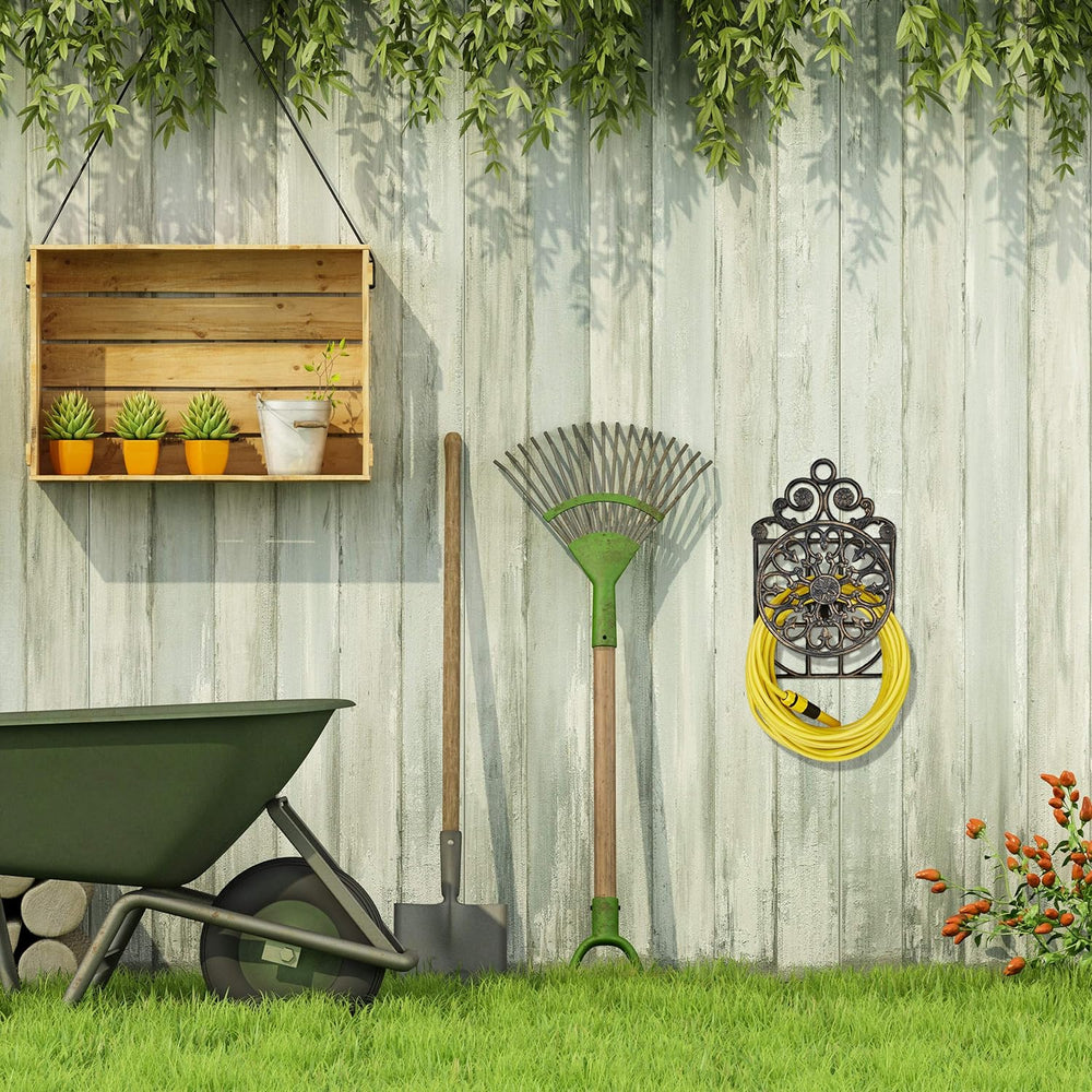 Relaxdays Schlauchhalter, grosser Wasserschlauchhalter in nostalgischem Design, Gusseisen, hängend,