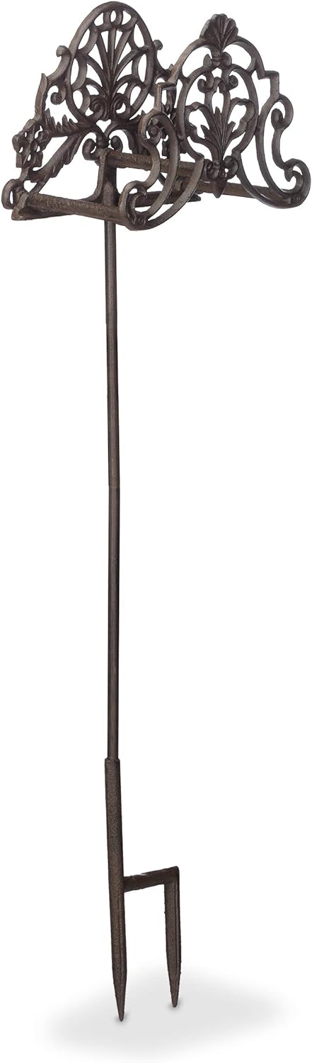 Relaxdays Schlauchhalter freistehend, Gusseisen, antik, Schlauchhalterung mit Erdspiess, HxBxT: 100