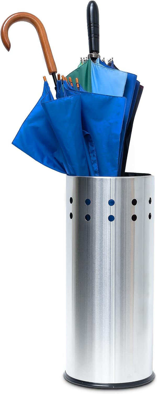 Relaxdays Schirmständer, Metall, Silber, 49.5 x 22.5 x 22.5 cm