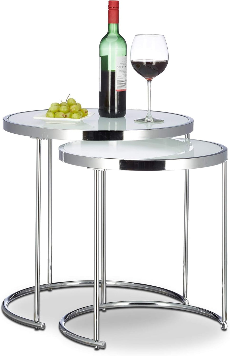 Relaxdays Satztische rund, Chromgestell, 2er Set, modernes Design - Milchglas, Couchtisch Metall, Be