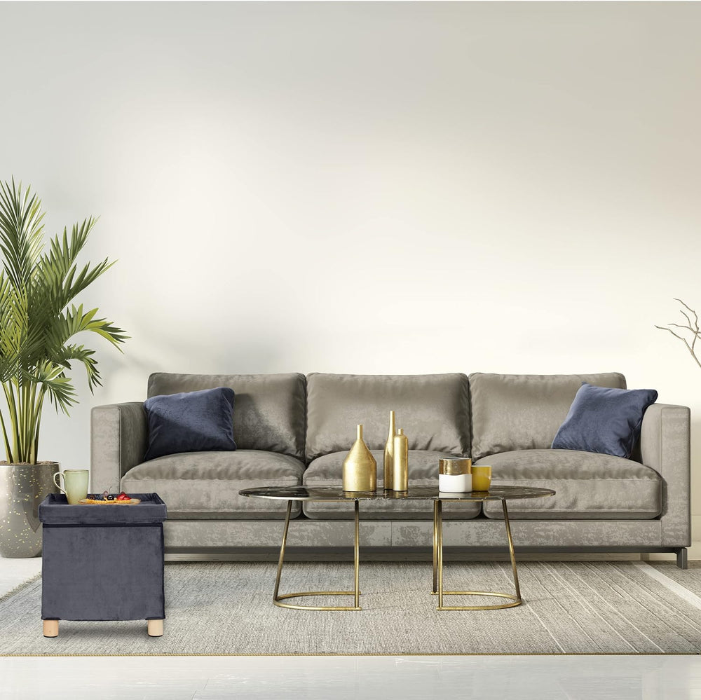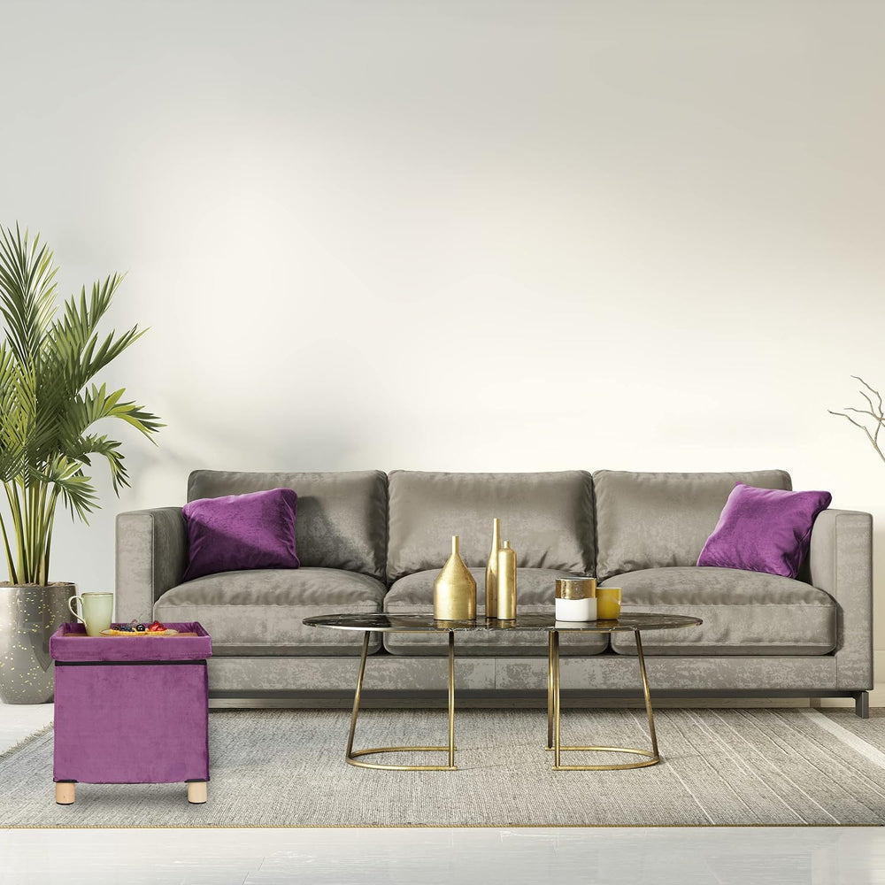 Relaxdays Samthocker mit Stauraum, Tablett im Deckel, mit Holzbeinen, eckiger Sitzhocker, HBT 35 x 3