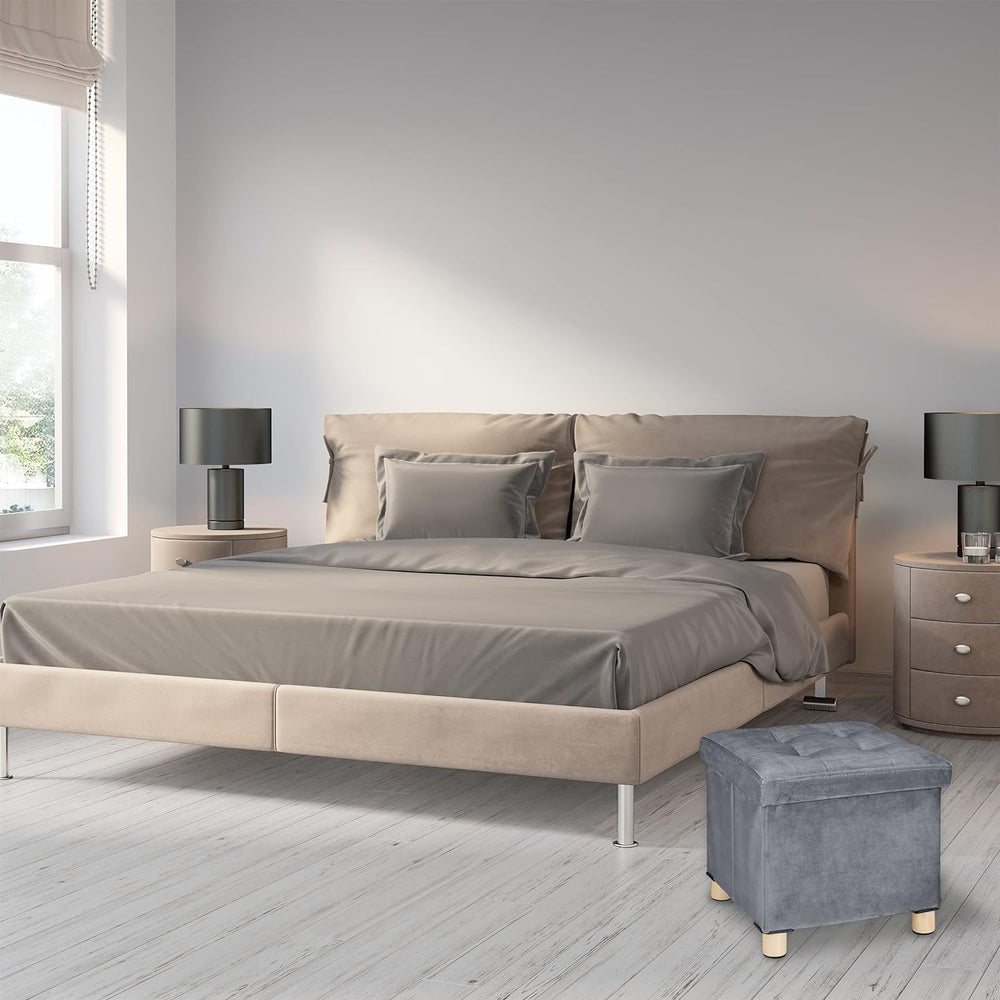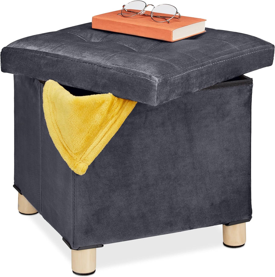 Relaxdays Samthocker mit Stauraum, Tablett im Deckel, mit Holzbeinen, eckiger Sitzhocker, HBT: 35x38