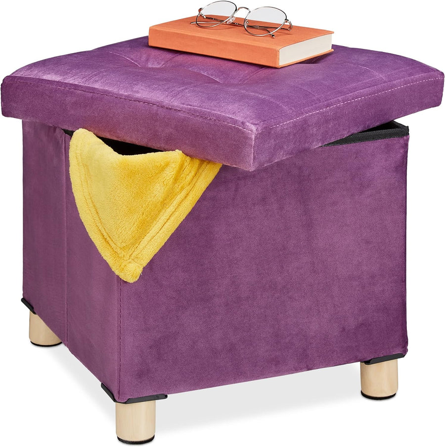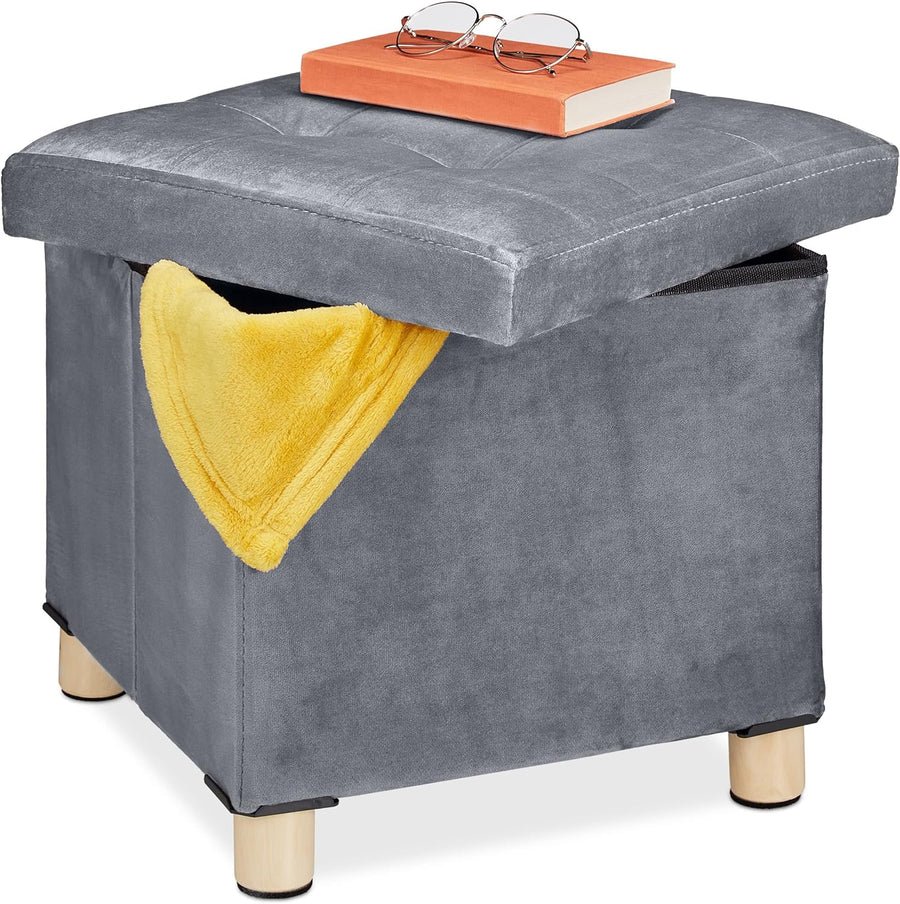 Relaxdays Samthocker mit Stauraum, Tablett im Deckel, mit Holzbeinen, eckiger Sitzhocker, HBT: 35 x