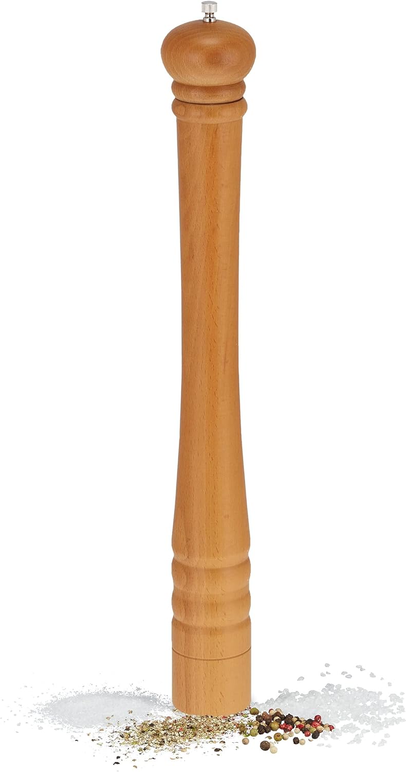 Relaxdays Salz-und Pfeffermühle, XXL Gewürzmühle, Holz, Keramikmahlwerk, manuell, HxD: 51,5 x 6 cm,