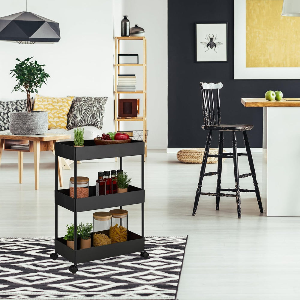Relaxdays Rollwagen, 3 Etagen, Servierwagen, Küchenwagen, Bad & Büro, Rollregal, HxBxT: 65 x 39,5 x