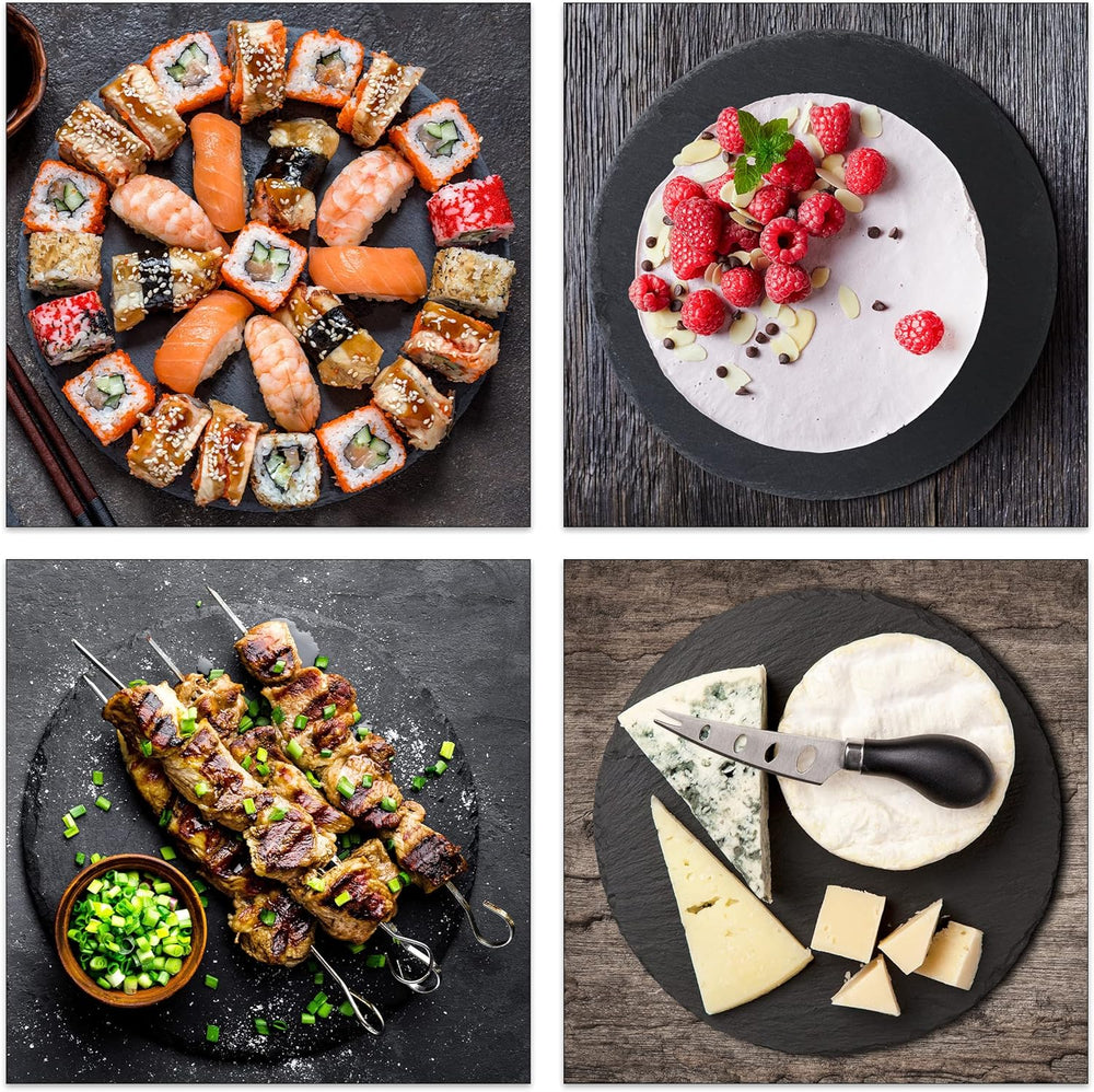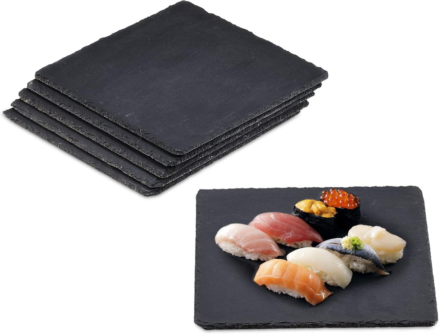 Relaxdays Schieferplatte 6er Set, 25 x 25 cm, zum Servieren & Beschriften, Buffet, Servierplatte qua