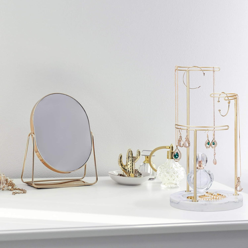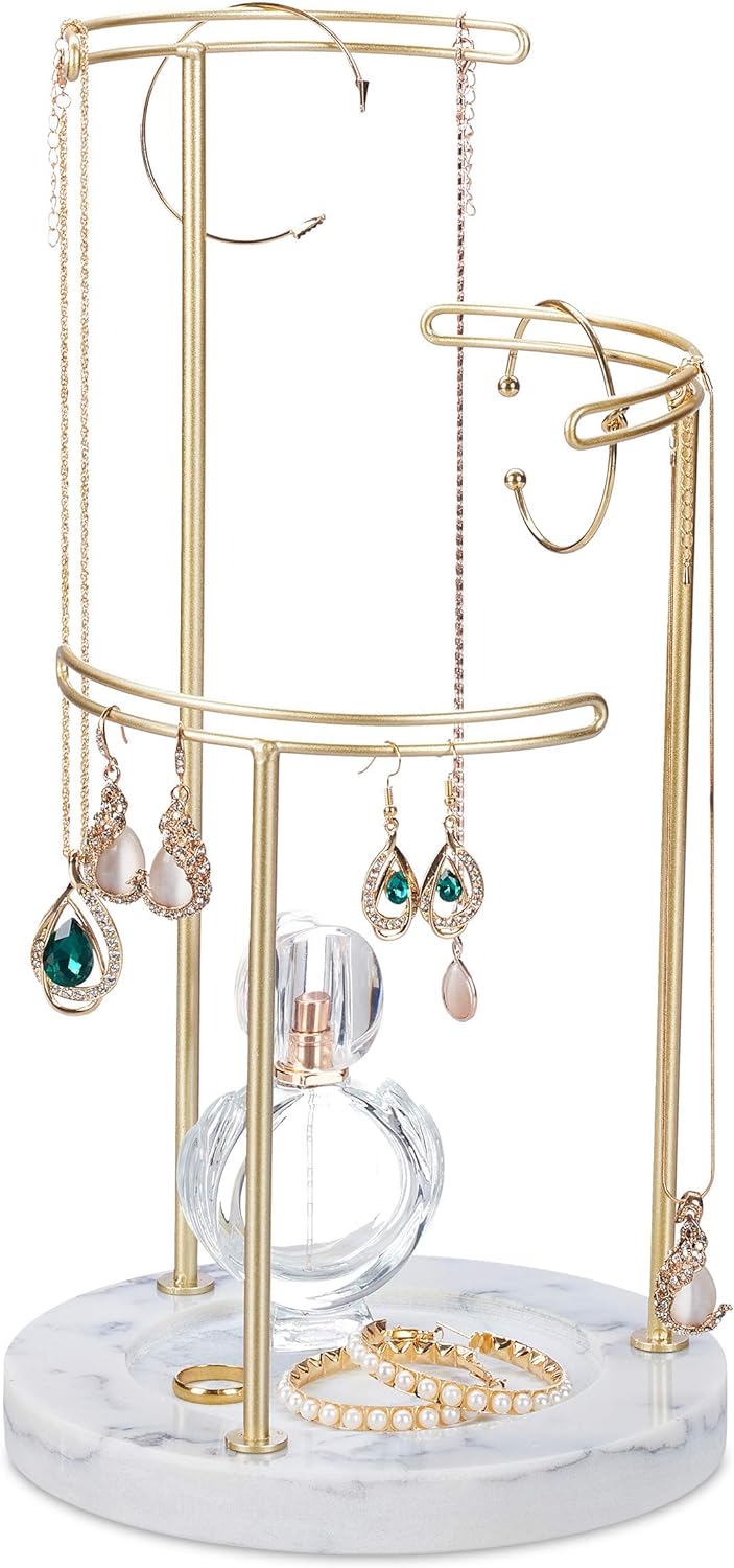 Relaxdays Schmuckständer, Marmor Ablage, Schmuckhalter Ketten, Ohrringe, Armbänder, 3 Metall Stangen