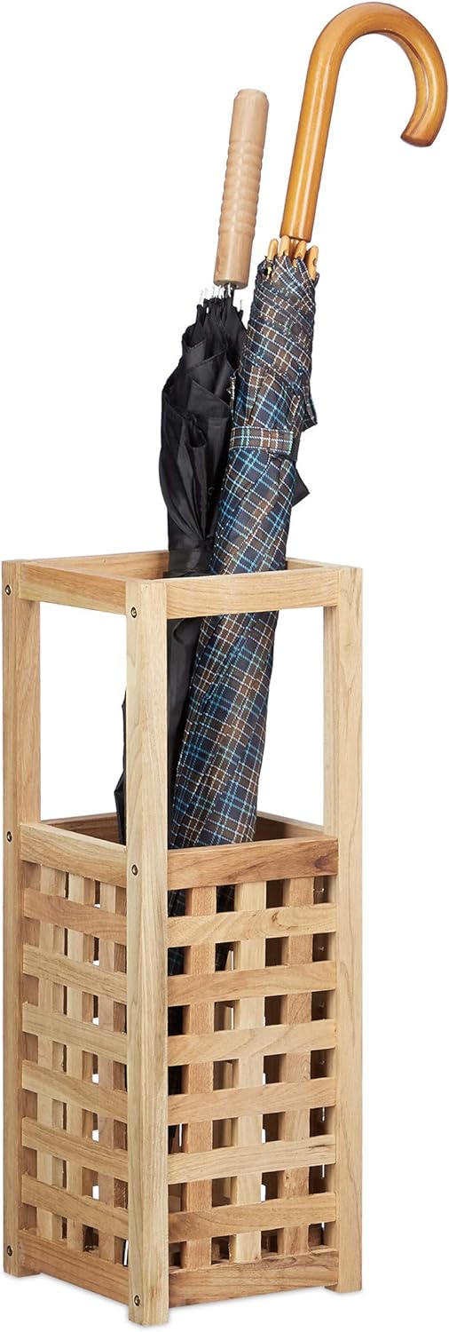 Relaxdays Schirmständer Walnuss, quadratisch, Schirmhalter, Regenschirmständer, Holz, H x B x T: 50