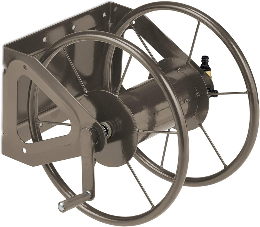 Relaxdays Schlauchtrommel, Stahl, 60 m Schlauch, Klickkupplungen, Wandschlauchhalter, Bodenmontage,