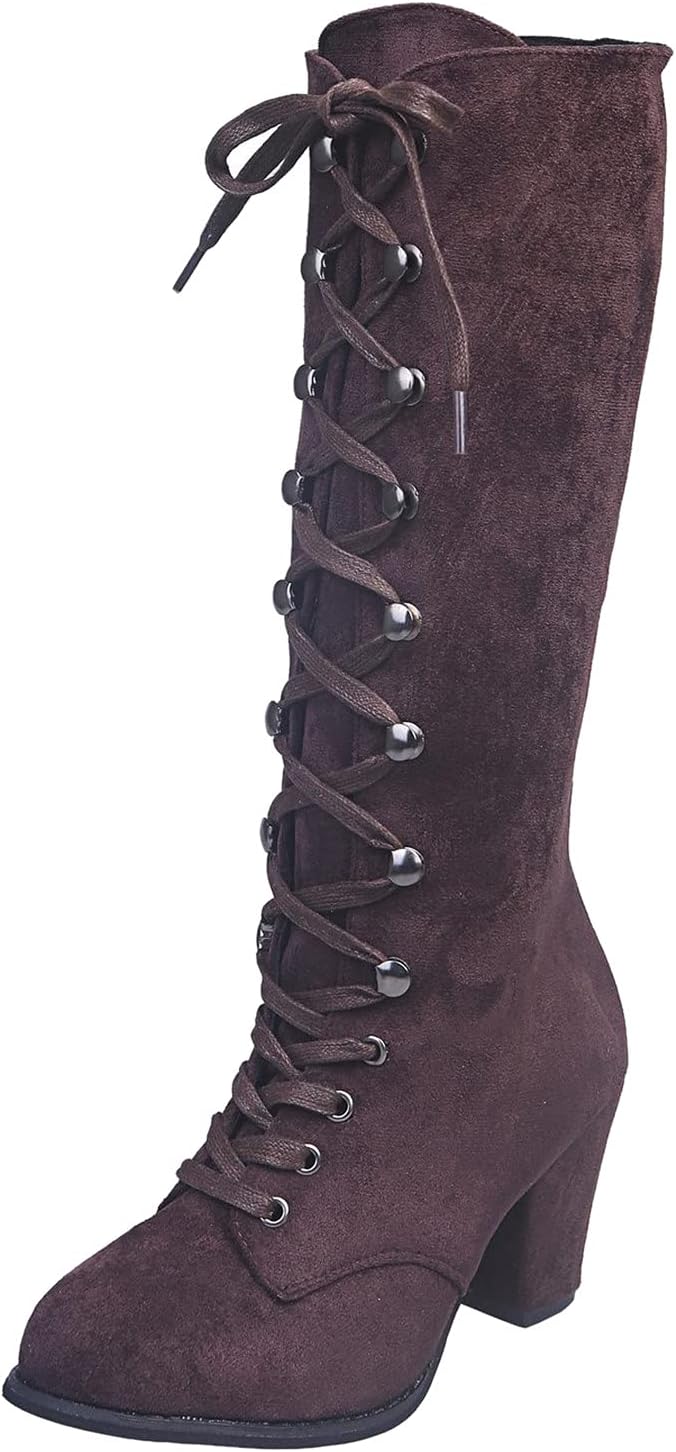 Winterstiefel Damen, Stiefel Damen mit Absatz Blockabsatz Langschaft Hohe Stiefel Schnürstiefel Eleg