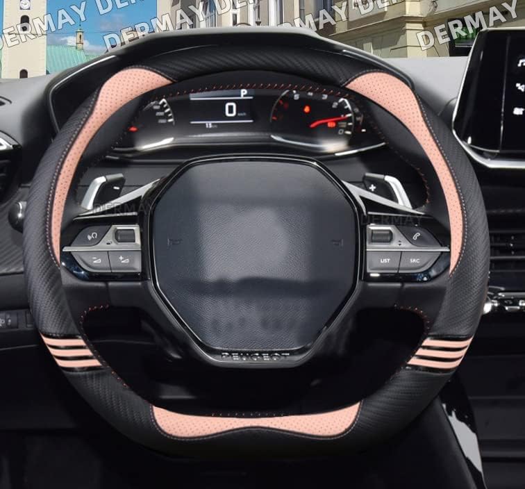 Xihaoer für 207 208 3008 4008 5008 niedliche Auto-Lenkradhülle Kohlefaser + PU-Leder Cartoon Damen A