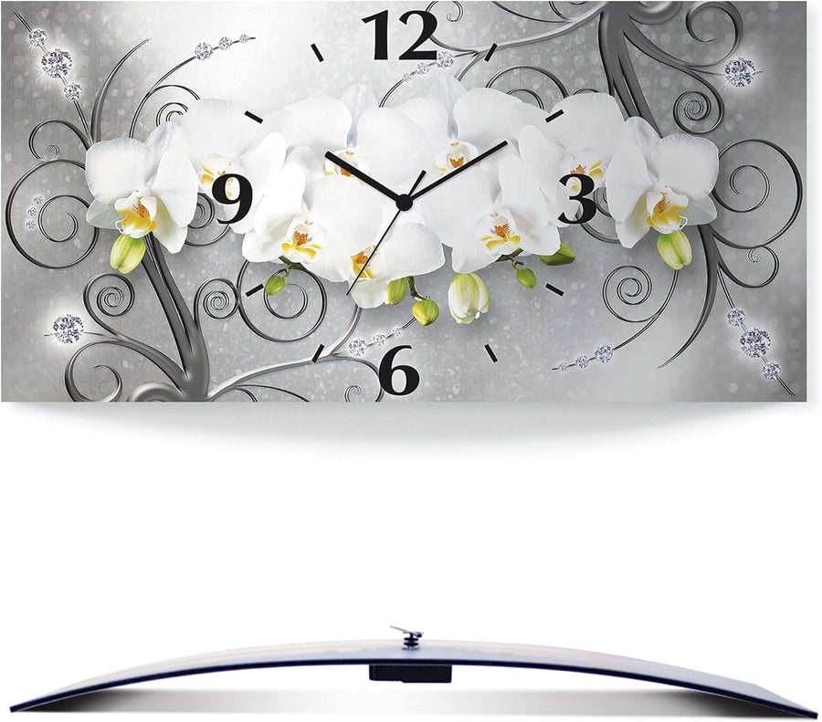ARTLAND Wanduhr ohne Tickgeräusche Alu Quarzuhr lautlos 50x25 cm Rechteckig Blumenbilder Orchideen A