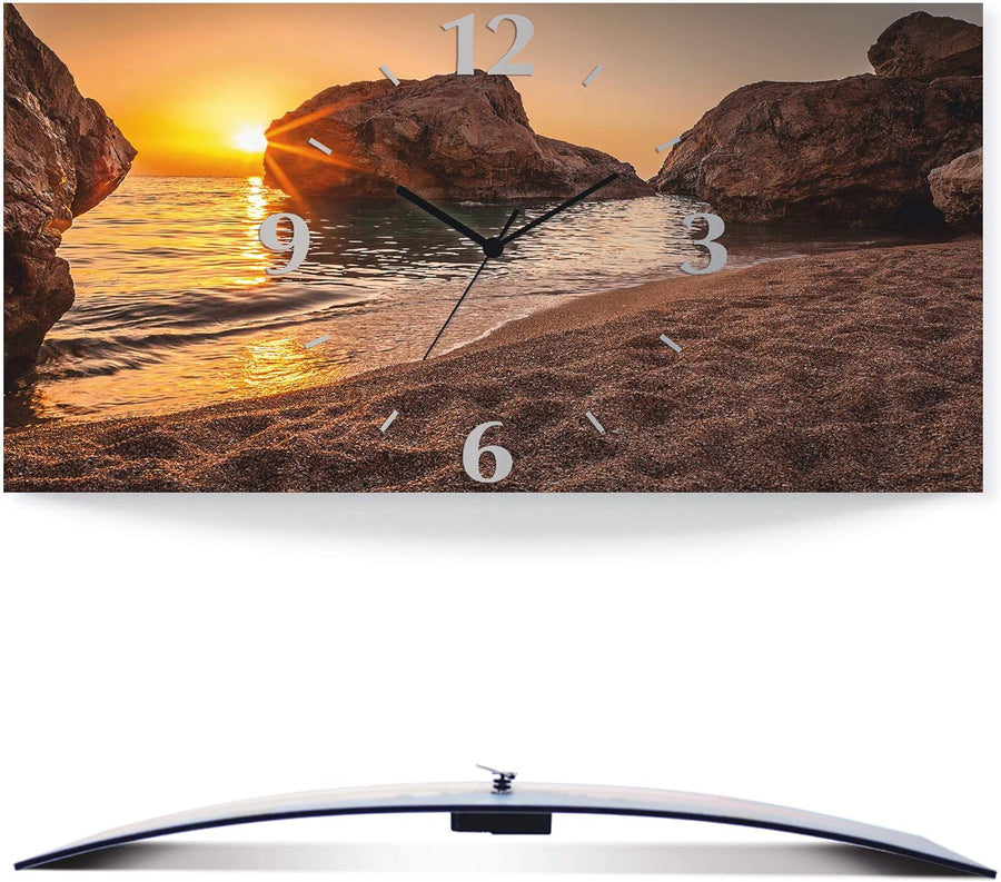 ARTLAND Wanduhr ohne Tickgeräusche Alu Quarzuhr 60x30 cm Rechteckig Lautlos Strand Meer Felsen Sonne
