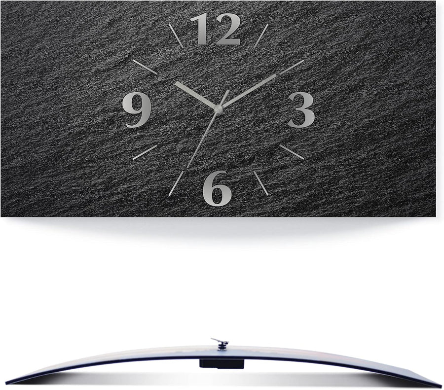 ARTLAND Wanduhr ohne Tickgeräusche Alu Quarzuhr analoge Quarzuhr 50x25 cm Schieferoptik U1RE Schiefe