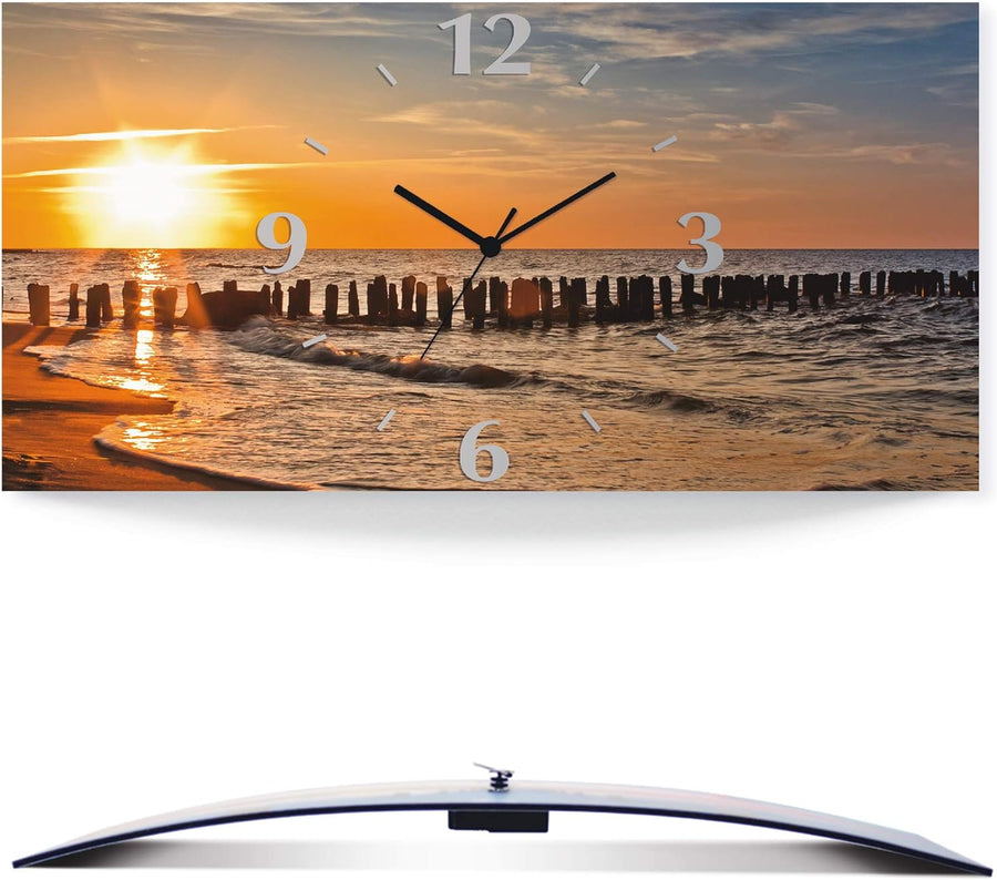 ARTLAND Wanduhr ohne Tickgeräusche Alu Quarzuhr lautlos 50x25 cm Rechteckig Strandbilder Meer Sonnen