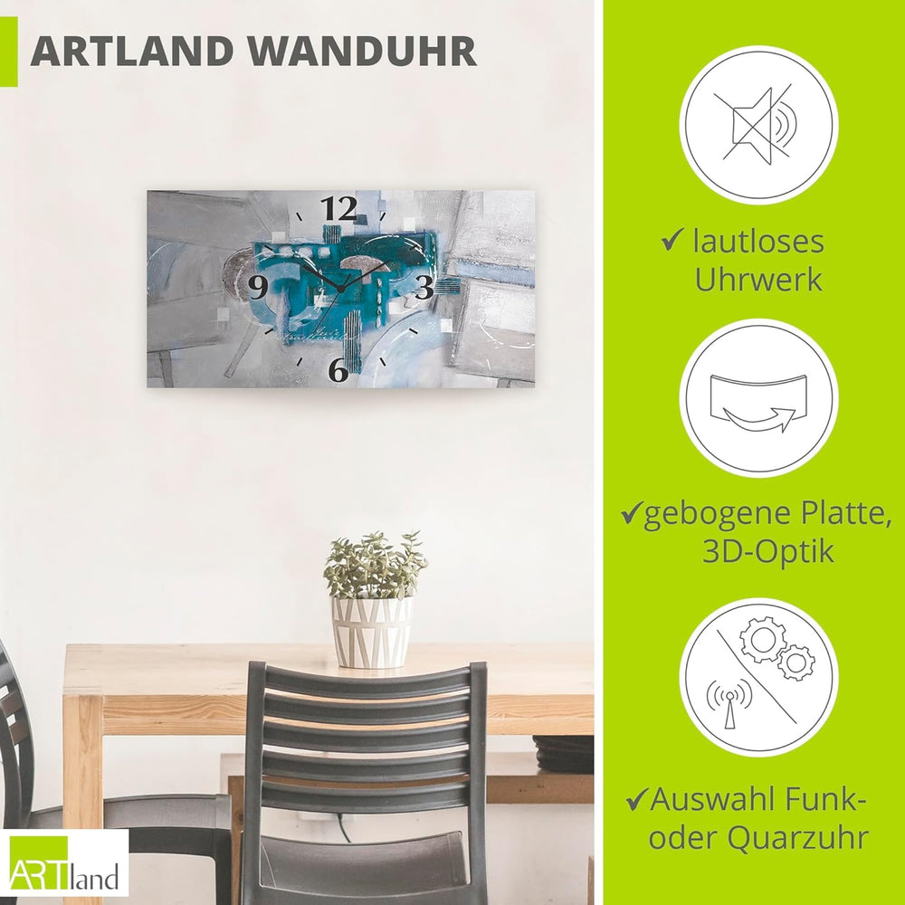 ARTLAND Wanduhr ohne Tickgeräusche Alu Quarzuhr lautlos 50x25 cm Rechteckig Abstrakte Bilder Kunst A