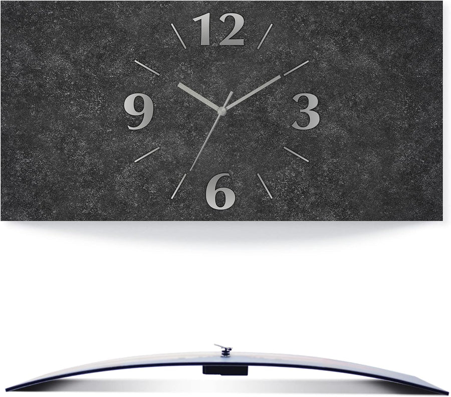 ARTLAND Wanduhr ohne Tickgeräusche Alu Quarzuhr analoge Quarzuhr 50x25 cm Granitoptik Gesteinoptik A