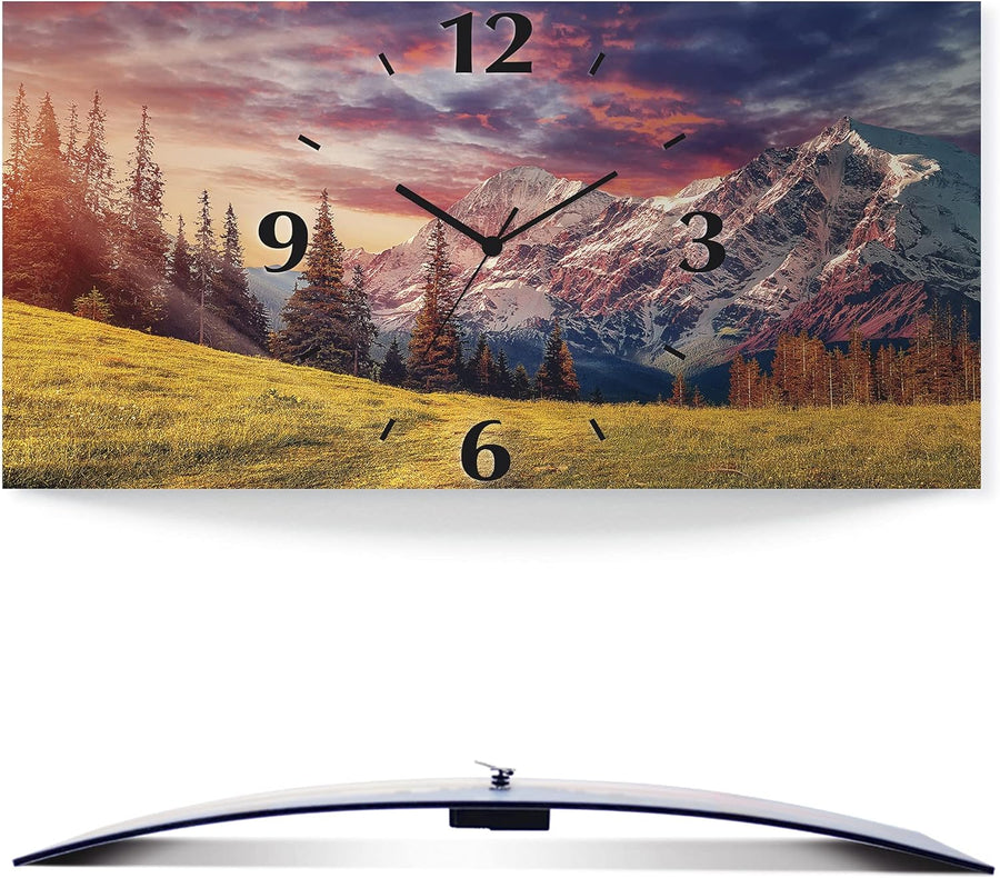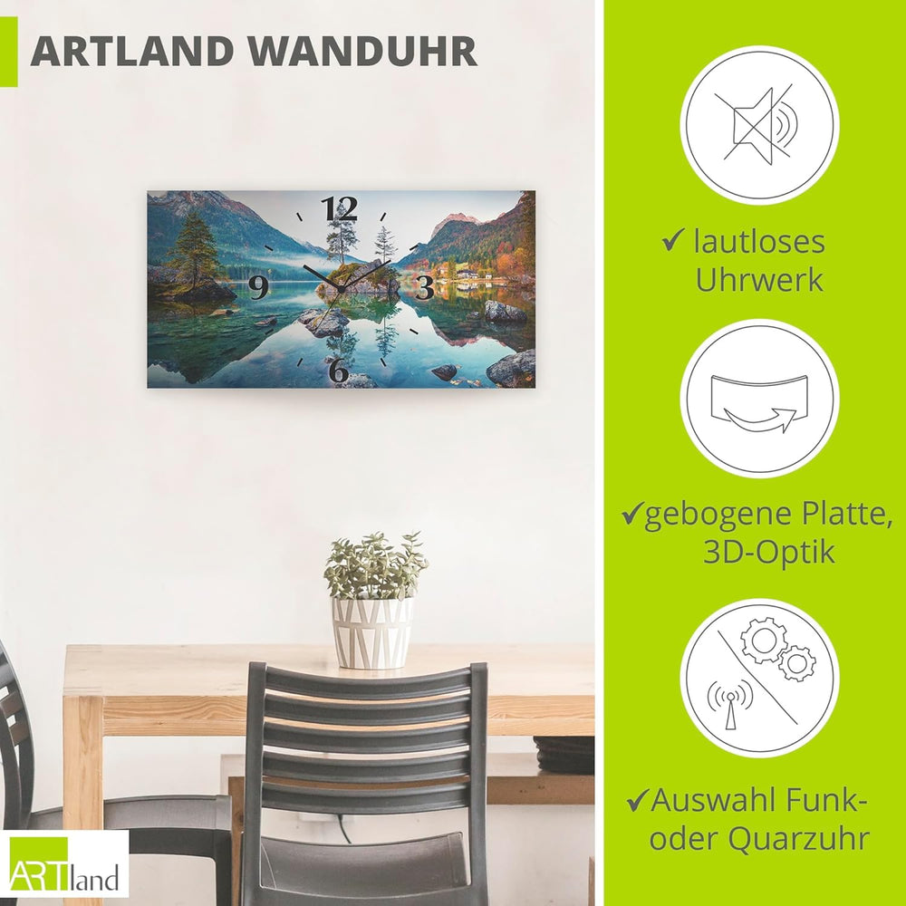 ARTLAND Wanduhr ohne Tickgeräusche Alu Quarzuhr lautlos 50x25 cm Rechteckig Landschaftsbilder Natur