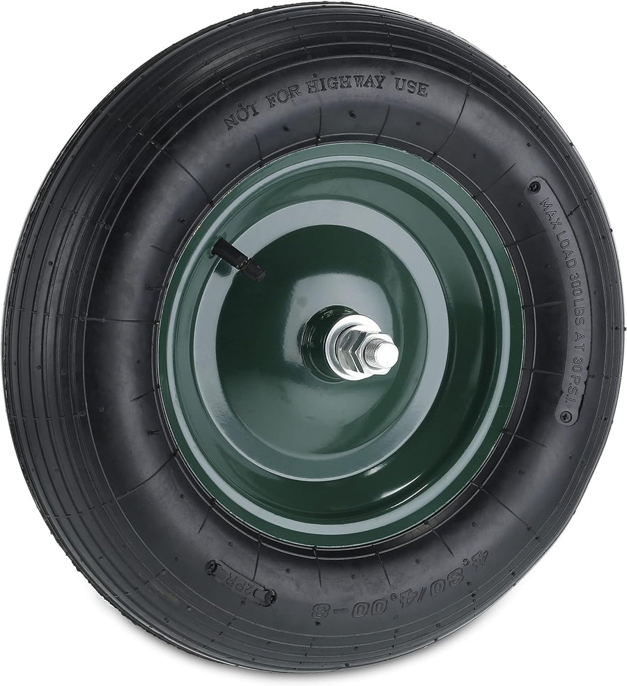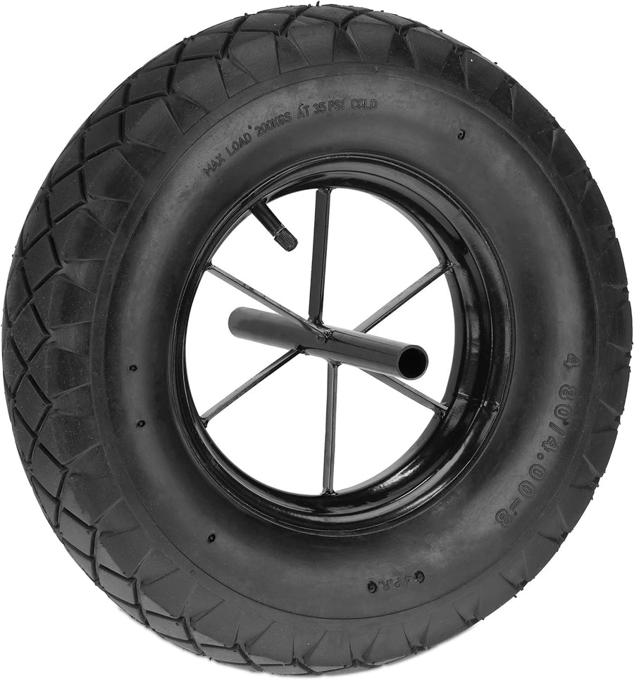 Relaxdays Schubkarrenrad 4.80 4.00-8, luftbereift, Stahlfelge, mit Achse, Ersatzrad Schubkarre, bis