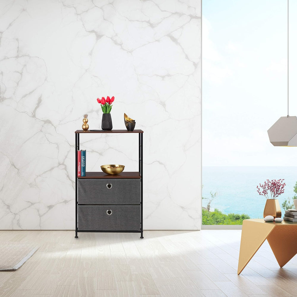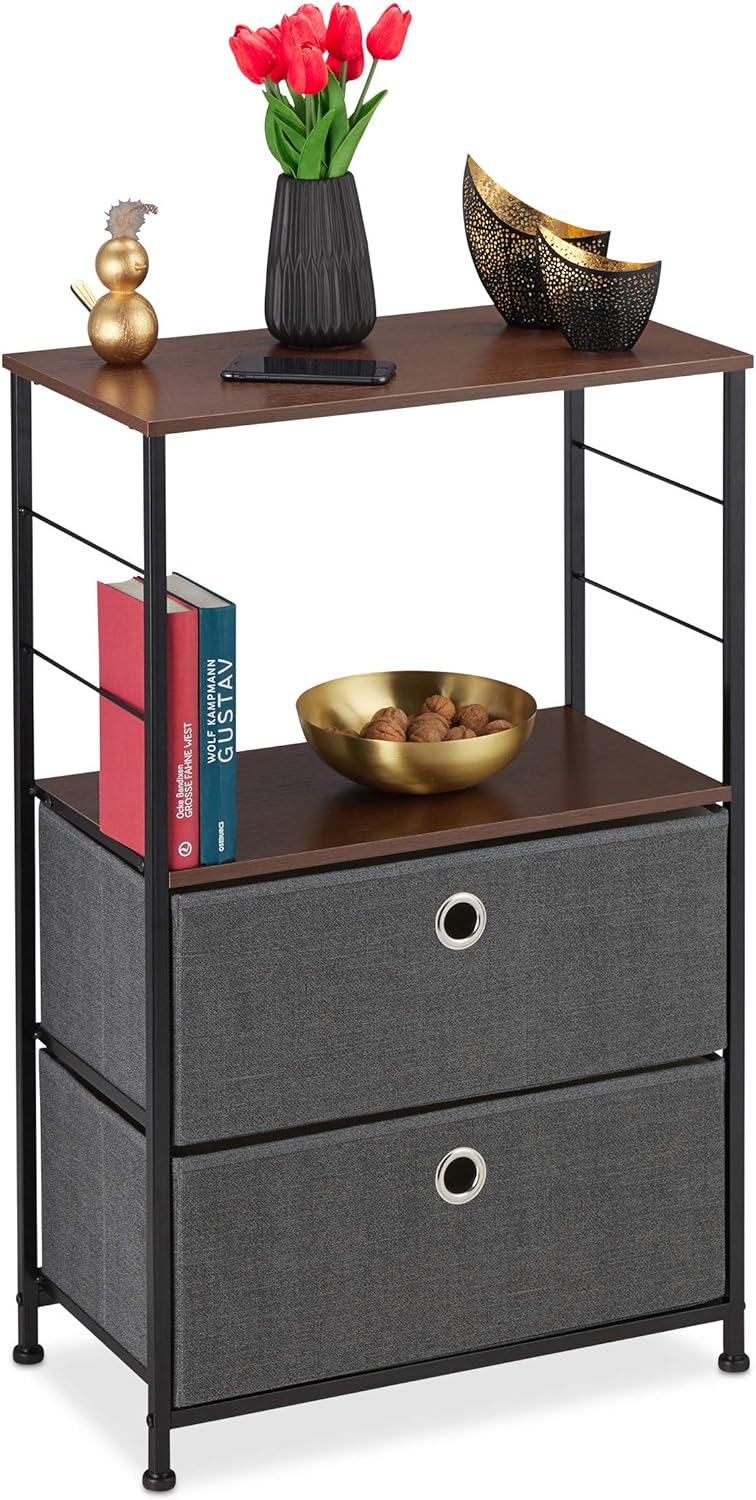 Relaxdays Schubladenschrank, 2 Stoff Schubfächer, Ablage, Platte in Holzoptik, Stahlbeine, HBT 85,5