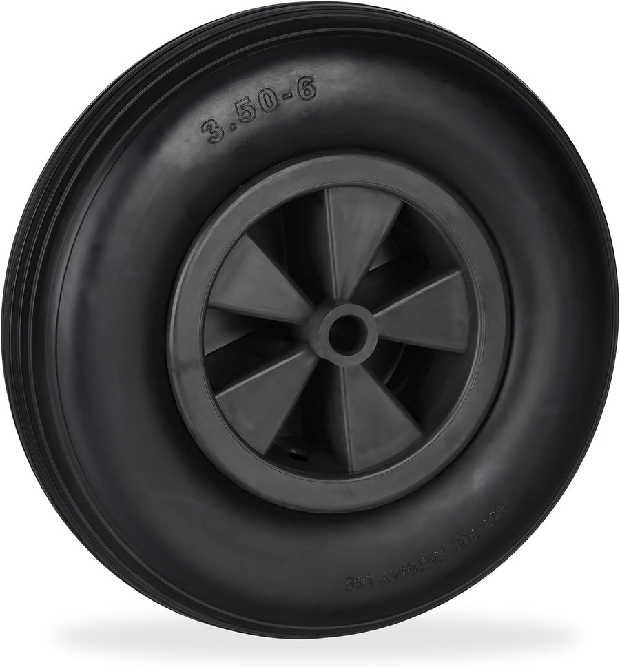 Relaxdays Schubkarrenrad 3.50-6, Vollgummi, Kunststofffelge, Ersatzrad Schubkarre, pannensicher, bis