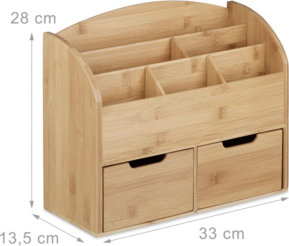 Relaxdays Schreibtisch Organizer, 6 Fächer, 2 Schubladen, für Büroutensilien, Bambus, Briefablage, 2