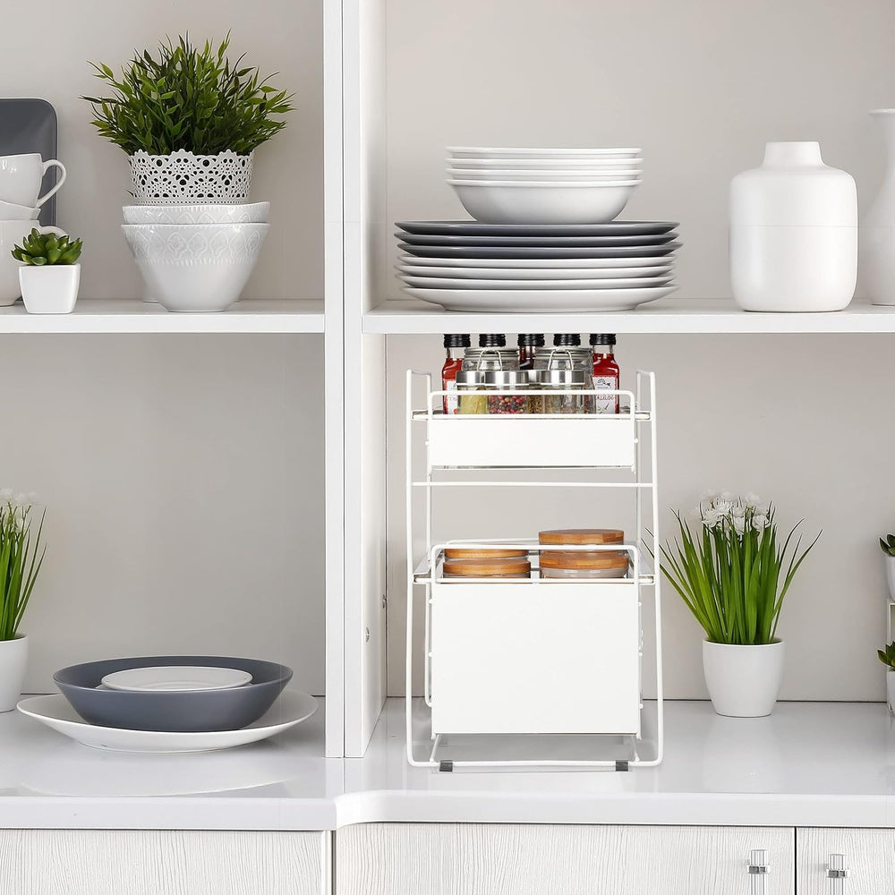 Relaxdays Schubladenregal, mit 2 Körben, Unterschrank Organizer, Küche und Bad, Korbauszug, HBT: 39,