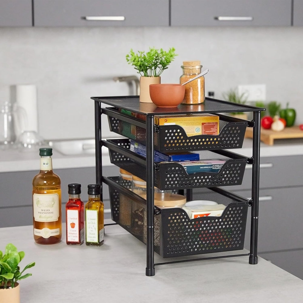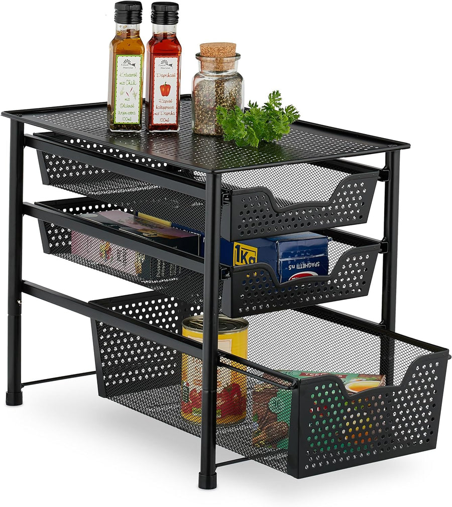 Relaxdays Schubladenregal, stapelbarer Büro Organizer, 3 Ausziehkörbe, Metall, Küche, Bad, HBT: 35x2