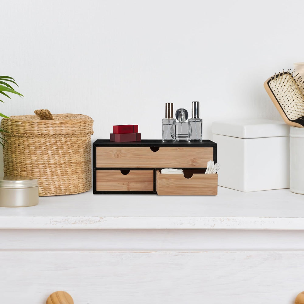Relaxdays Schreibtisch Organizer, 3 Schubfächer, Bambus & MDF, Aufbewahrungsbox Büro, HxBxT: 21 x 14