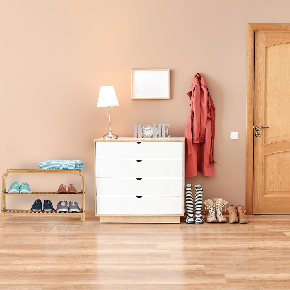 Relaxdays Schuhbank Bambus, 6 Paar Schuhe, Sitzbank Flur, Bad, 2 Ablagen, Garderobenbank HxBxT: 45 x