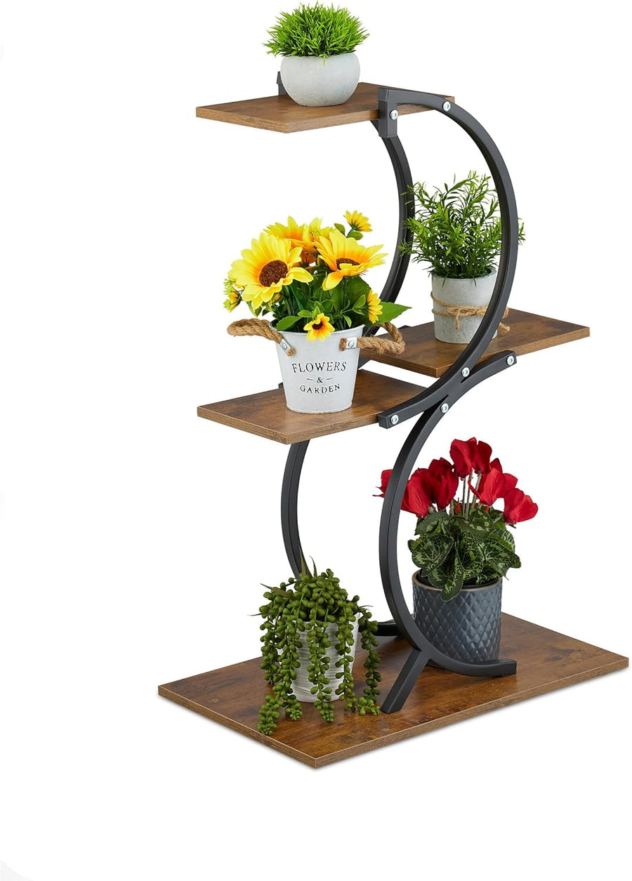 Relaxdays Pflanzenständer, 4 Ebenen, HxBxT: 76 x 48 x 30 cm, geschwungenes Blumenregal für 5 Blument