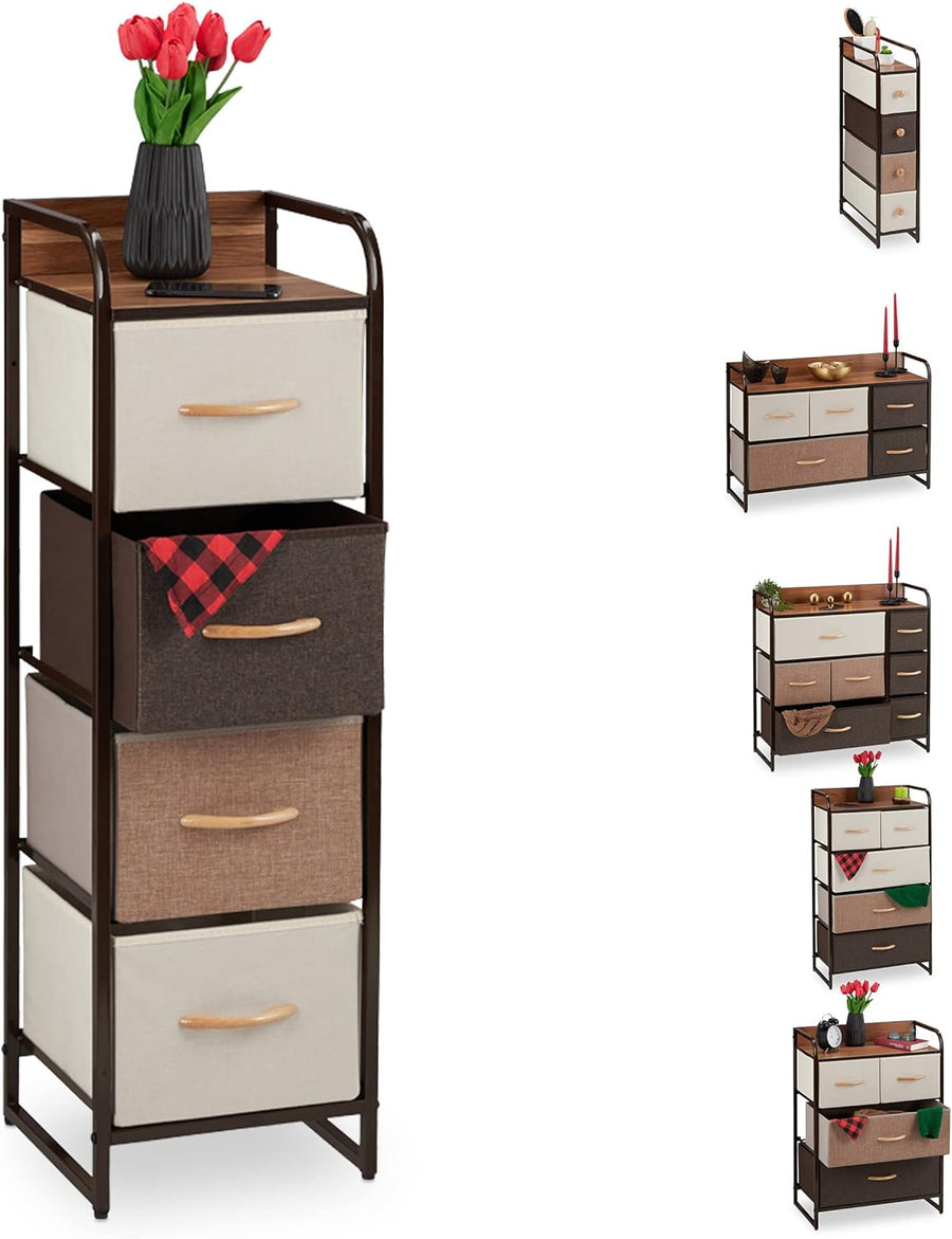 Relaxdays Schubladenschrank, 4 Stoff Fächer, schmal, mit Griffen, Ablage, Nischenschrank HBT 99,5 x