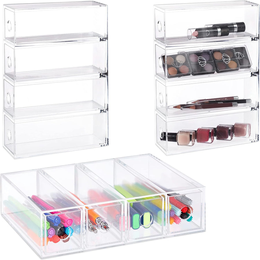 Relaxdays Schubladenbox Acryl, HBT: 6 x 25 x 17,5 cm, Hoch, Querformat, Organizer Kosmetik, Büro, 4