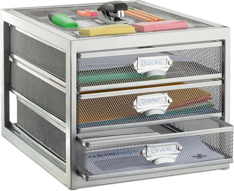 Relaxdays Schubladenbox, 3 Schubfächer, für Din A4 Dokumente, Ordnungssystem für Schreibtisch, Akten