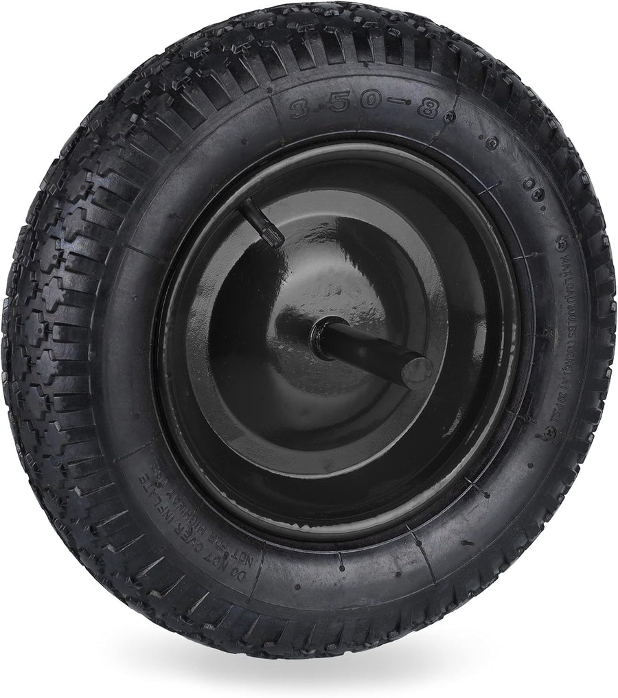 Relaxdays Schubkarrenrad 3.50-8, Luftreifen mit Fester Achse, Stahlfelge, Ersatzrad Schubkarre, 120
