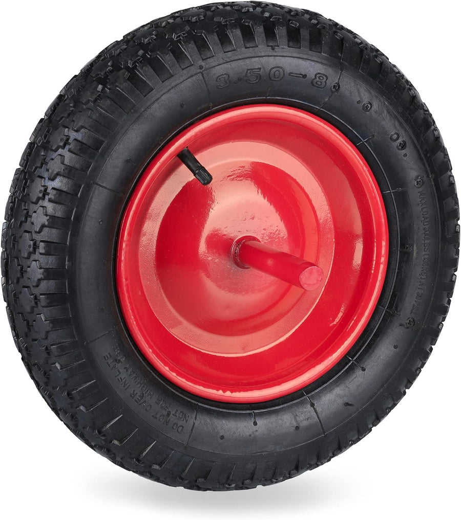 Relaxdays Schubkarrenrad 3.50-8, Luftreifen mit Fester Achse, Stahlfelge, Ersatzrad für Schubkarre,