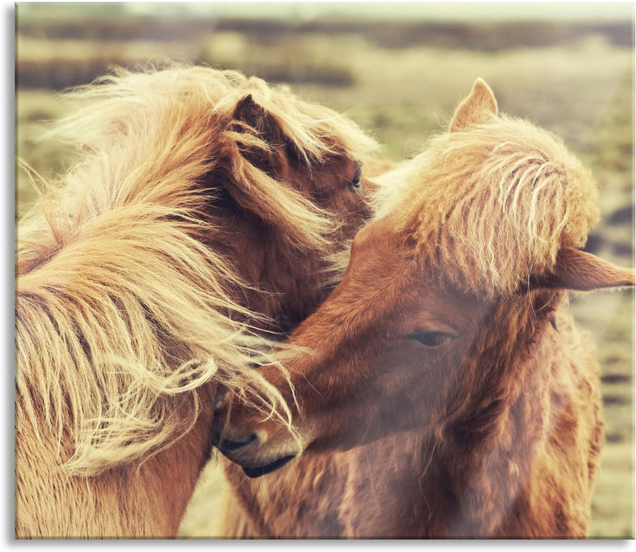 Islandpferde Pony Herdabdeckplatte & Spritzschutz aus Echtglas | Für Herd-Kochfelder | 60x52 cm