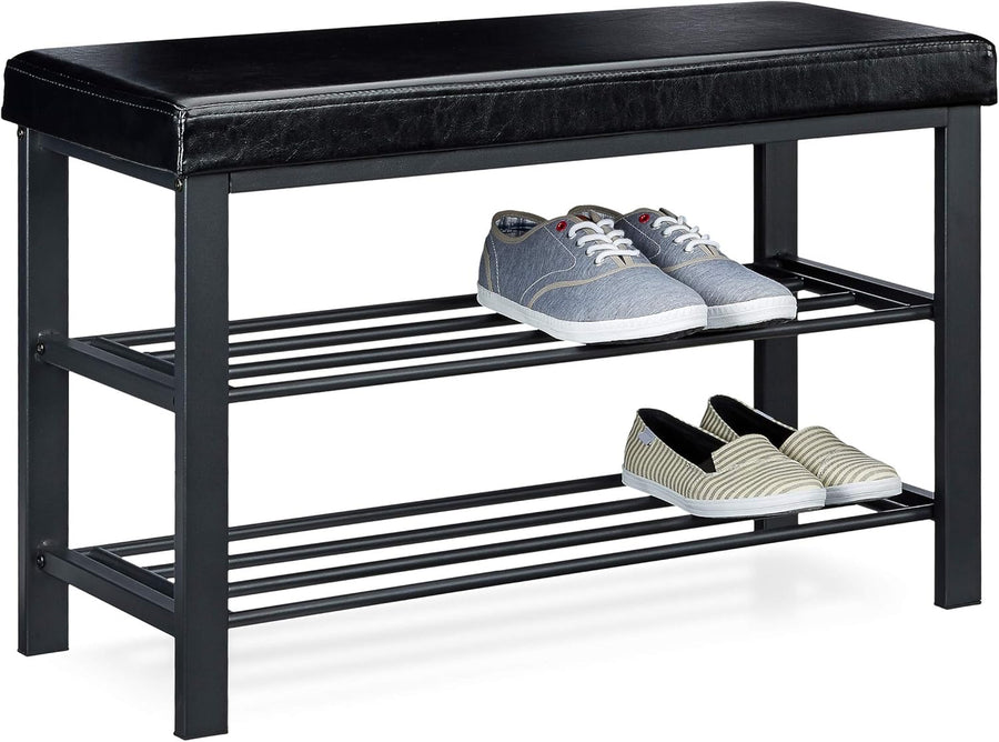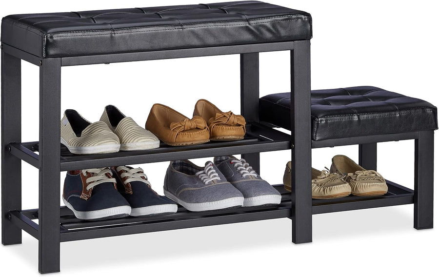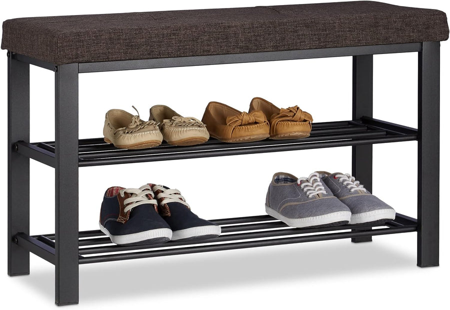 Relaxdays Schuhbank, gemütliches Sitzpolster mit Stoffbezug, offen, 2 Ebenen für Schuhe, Metall, HBT