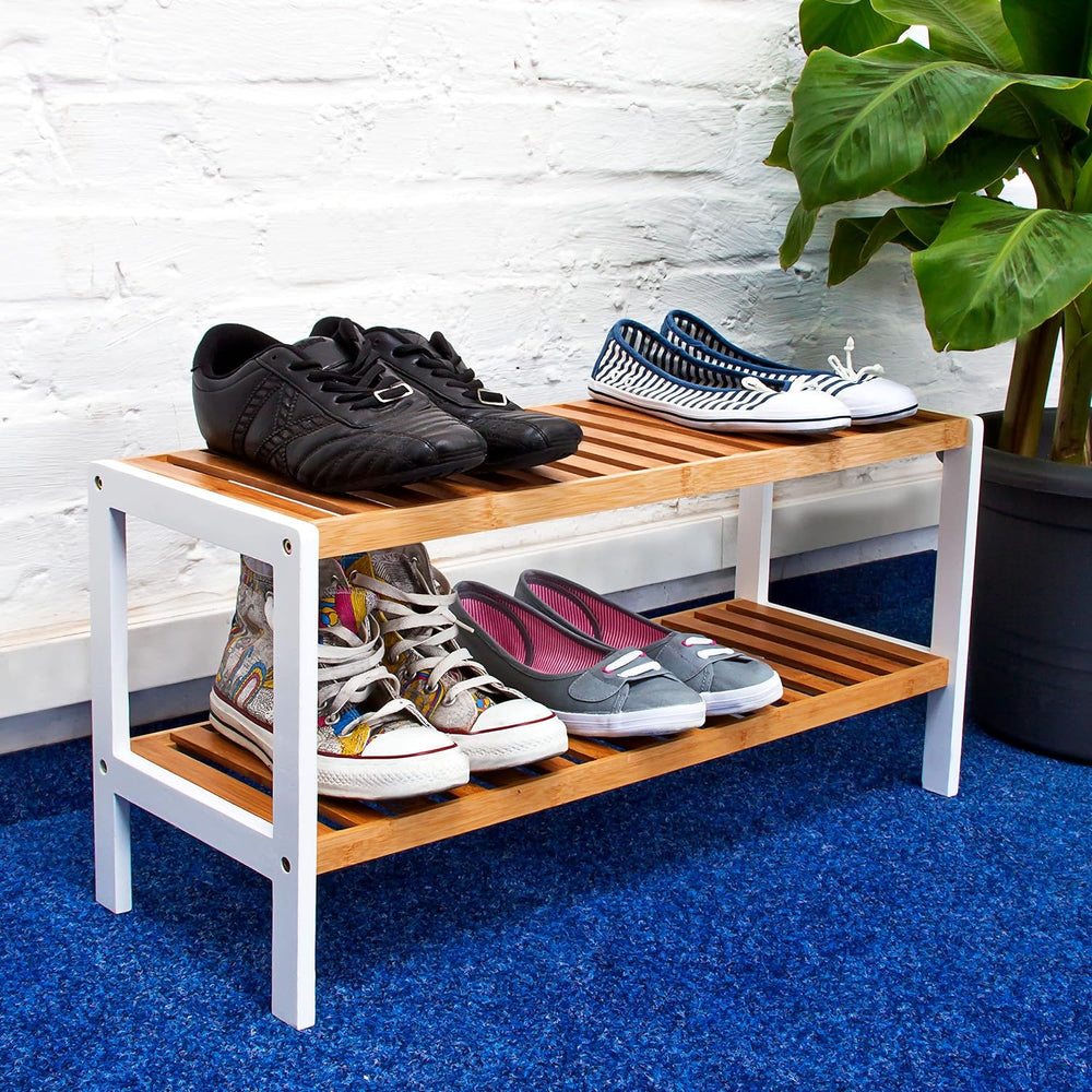 Relaxdays Schuhregal aus Bambus HxBxT: 33 x 70 x 24,5 cm robustes Bambusregal mit 2 Ablagen langlebi