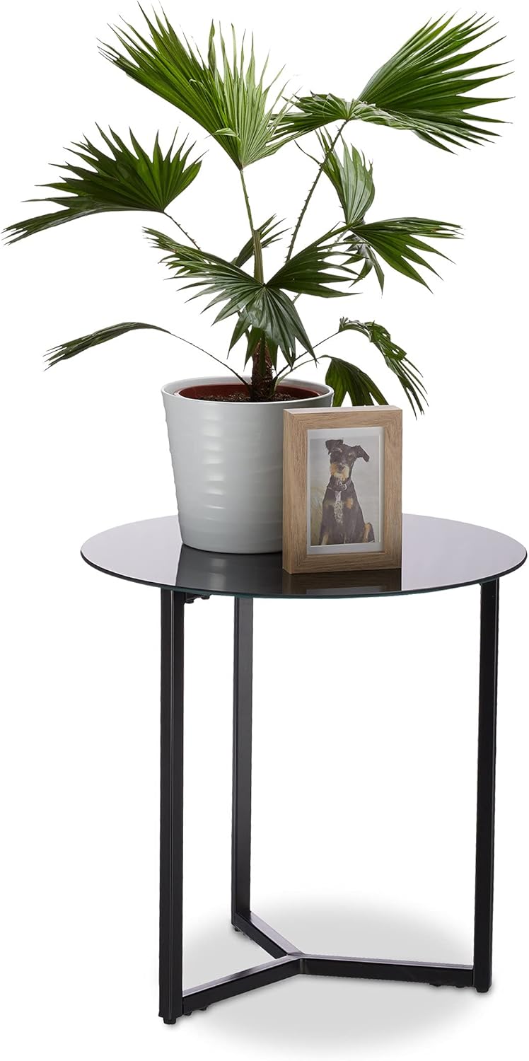 Relaxdays Schwarz Runder Beistelltisch aus Glas und Metall, dekorativer Loungetisch, HxBxT: 51 x 50