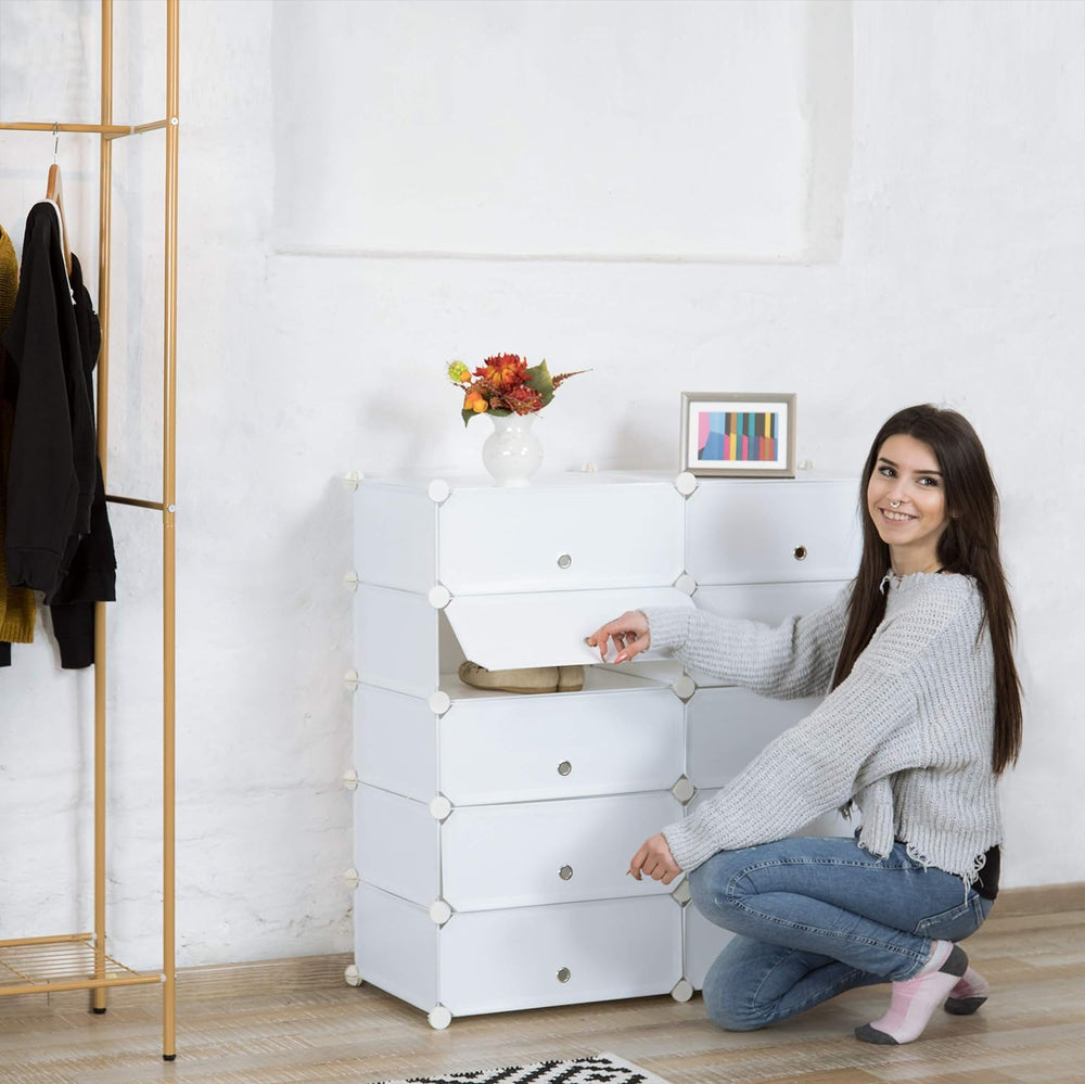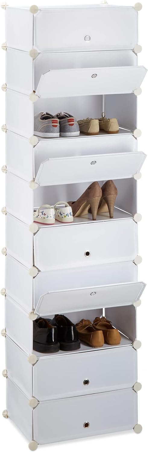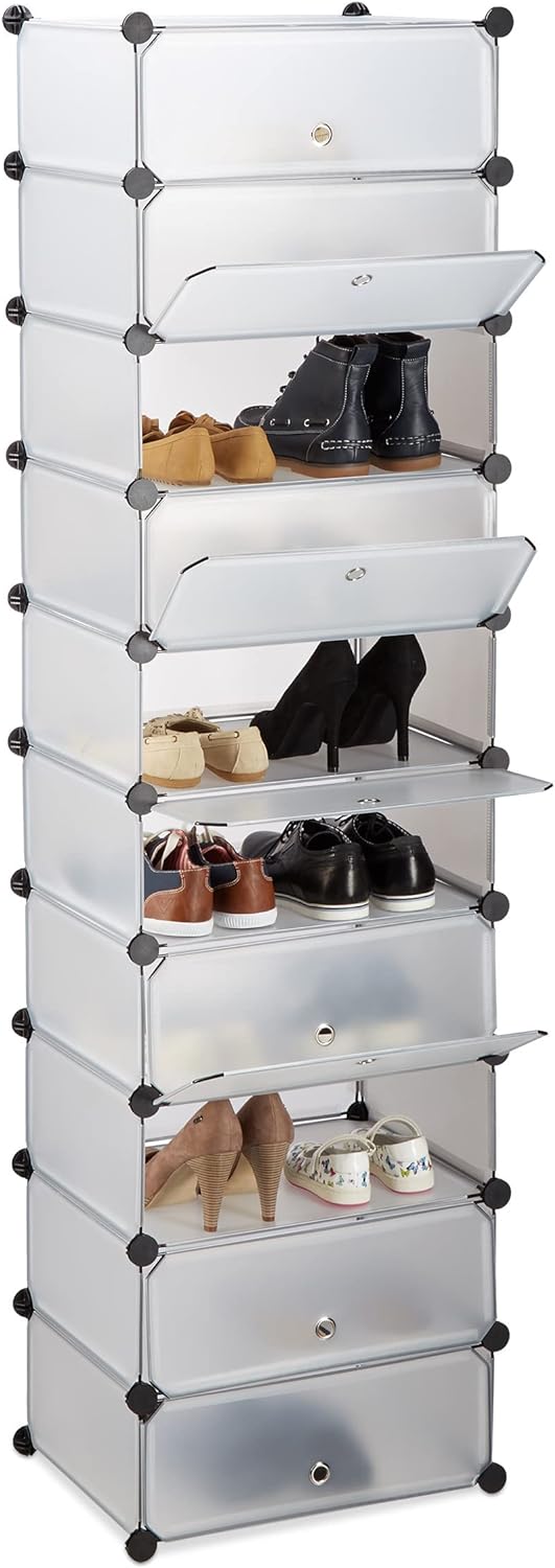 Relaxdays Schuhschrank mit 10 Fächern, Schuhregal gross, Steckregal Kunststoff, DIY, HxBxT ca. 90 x